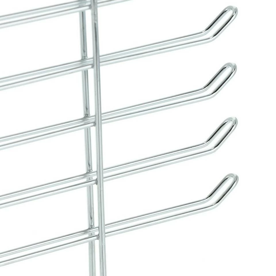 Krawattenbügel in modernem Design Oft kann es morgens doch einmal stressig werden, und dann muss die richtige Krawatte schnell gefunden sein. Bringen Sie deshalb Ordnung in Ihren Kleiderschrank mit diesem platzsparenden und modernen Krawattenhalter aus Metall. Er ermöglicht Ihnen nicht nur ein übersichtliches, sondern auch knitterfreies Aufhängen Ihrer Schlips-Sammlung. Ihre Lieblingskrawatte zerknittert so künftig nicht mehr achtlos im Schrank, sondern ist jederzeit tragebereit. Auch Gürtel und Tücher finden an den 16 Haken des Krawattenhängers Platz.