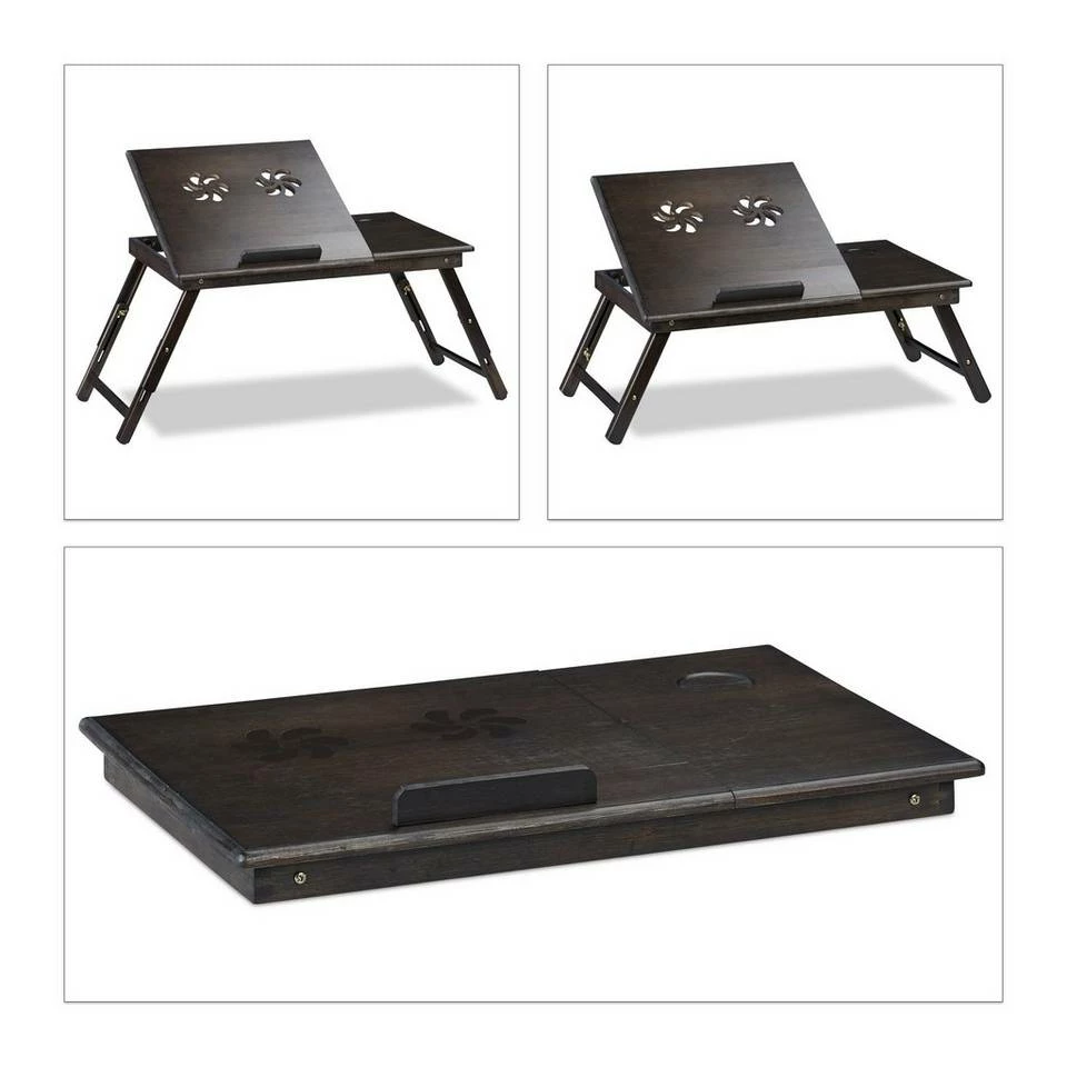Betttablett für Arbeit & Entspannung Der Bambus Laptoptisch ist ein komfortables Wohnaccessoire, das sowohl für Homeoffice als auch für den Feierabend nützlich ist. Die Ablagefläche für Bücher, Notebooks und Tablets ist höhenverstellbar und lässt sich in drei individuellen Winkeln einstellen. Büroarbeit oder entspanntes Serien-Schauen – beides wird mit dem klappbaren Tabletttisch im Bett oder auf dem Sofa richtig bequem. Durch die großen Luftlöcher bleiben Ihre elektronischen Geräte dabei länger leistungsfähig.
