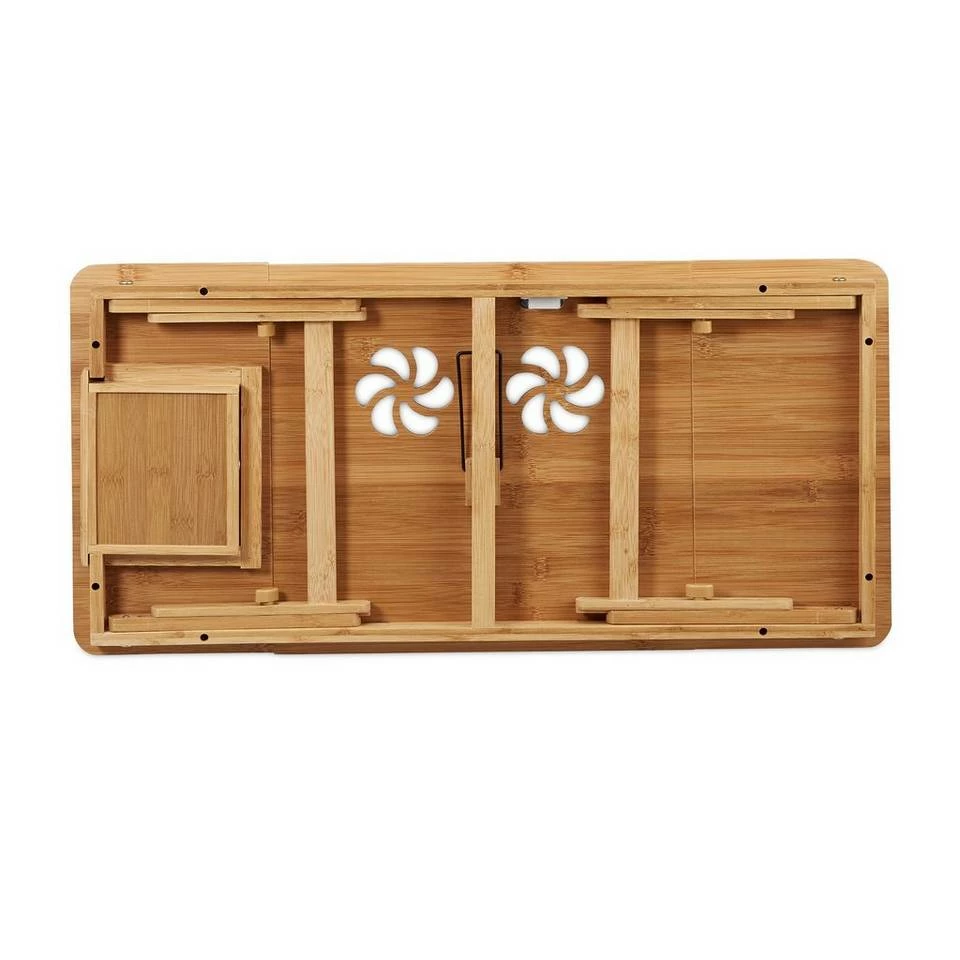Laptoptisch XL aus Bambus Sie wollen entspannt vom Sofa aus arbeiten oder einfach nur mit Ihren Freunden chatten? Mit dem geräumigen Laptoptisch können im Park, auf dem Sofa oder im Bett arbeiten ohne nur in die Nähe des ungeliebten Schreibtisches zu kommen. Der geräumige Knietisch, weiß durch seine Mobilität zu überzeugen und bietet gleichzeitig Platz für Laptops mit einer Größe von bis zu 17 Zoll. Durch die verstellbare Höhe und einen veränderbaren Neigungswinkel, lässt sich der Tisch auf die ideale Arbeitsposition anpassen.
