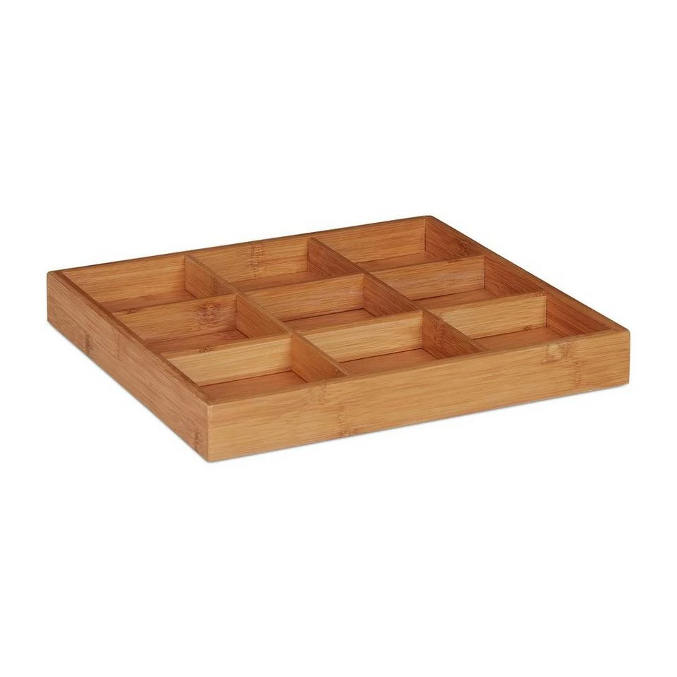 Niedriger Schrank in originellem Design Der Midi Schrank kann im Badezimmer, Schlafzimmer oder auch im Hobbyraum platziert werden. Sein modernes, zeitloses Design überzeugt mit Funktionalität. In dem aufliegenden Organizer können Sie Schmuck und Uhren formschön aufbewahren oder Sie nutzen ihn für Näh- und Bastelzubehör wie Knöpfe und Perlen. In seinen zwei Fächern ist zusätzlich genügend Platz, um diverse Dinge wie Handtücher und Badutensilien unterzubringen. Der Schrank mit seinen natürlichen Bambus-Elementen macht überall eine gute Figur.