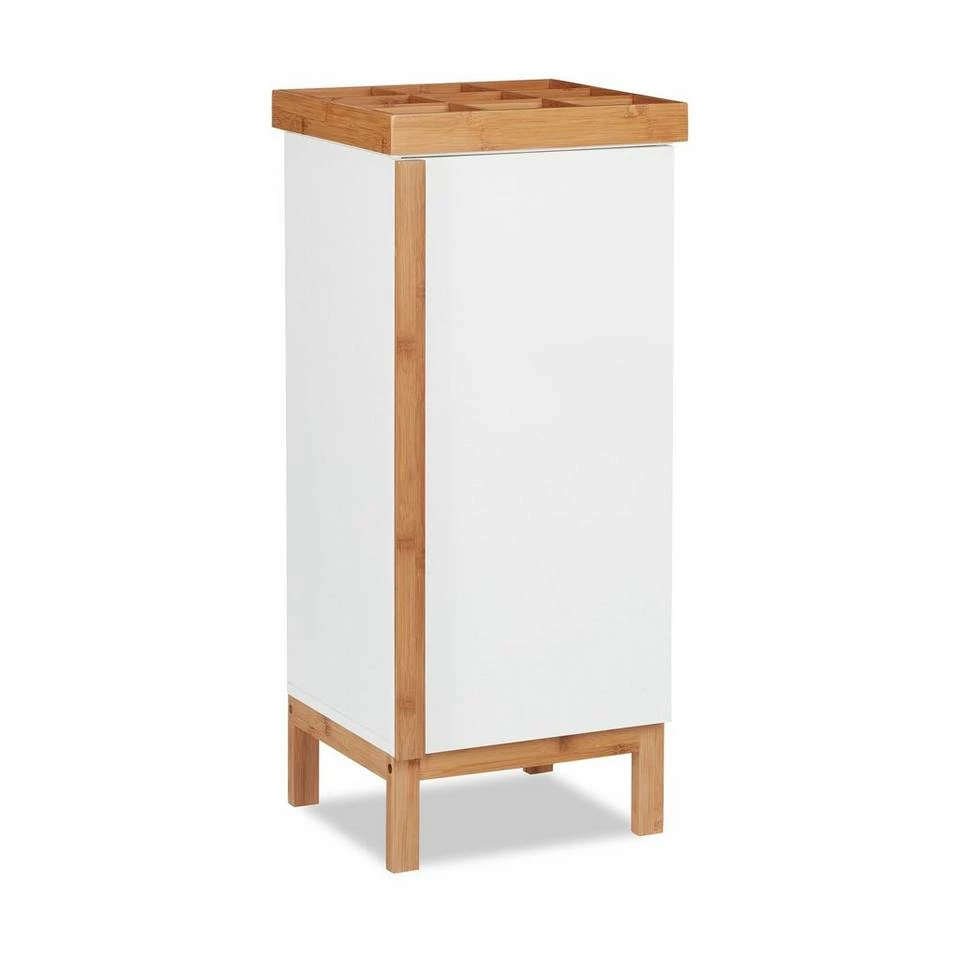 - Ordnung: Der niedrige Schrank bewahrt Ordnung im Bade- oder Schlafzimmer – Tür mit Bambus-Griff