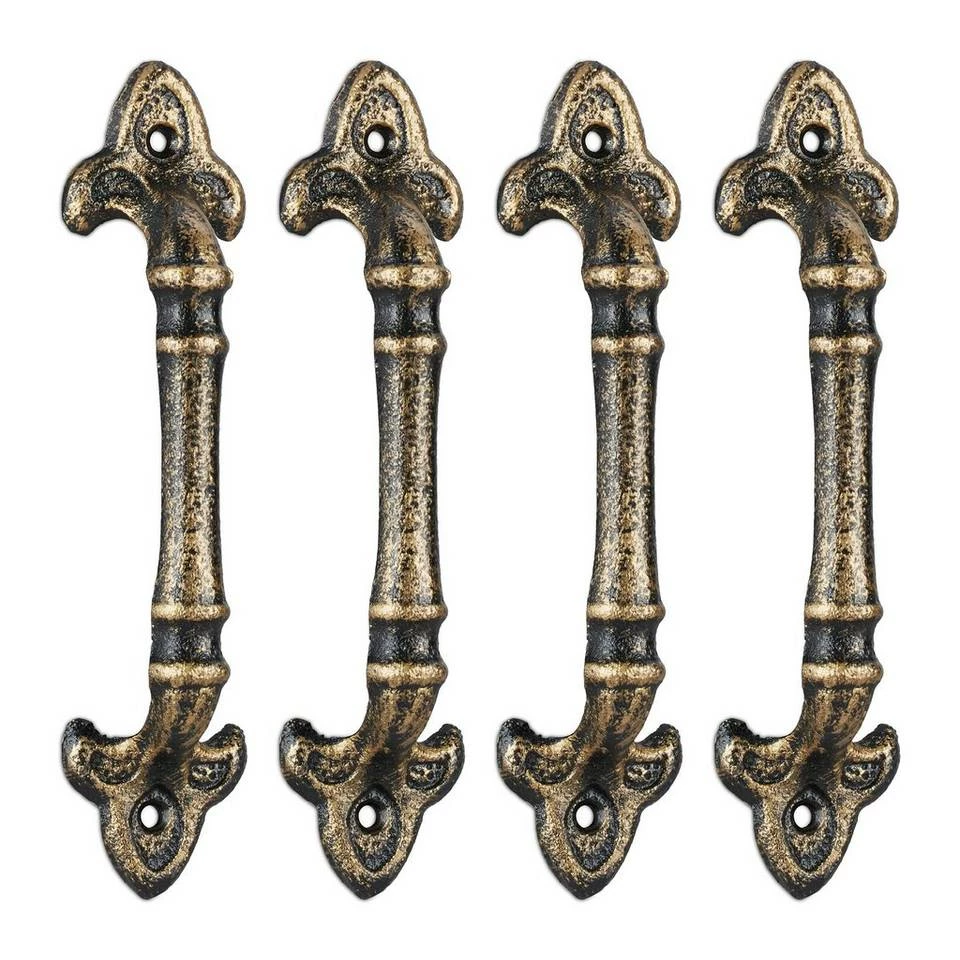 - 4 Stück: Antike Möbelgriffe mit Lilien-Ornament im 4er Pack – Rustikales Design in Shabby-Bronze