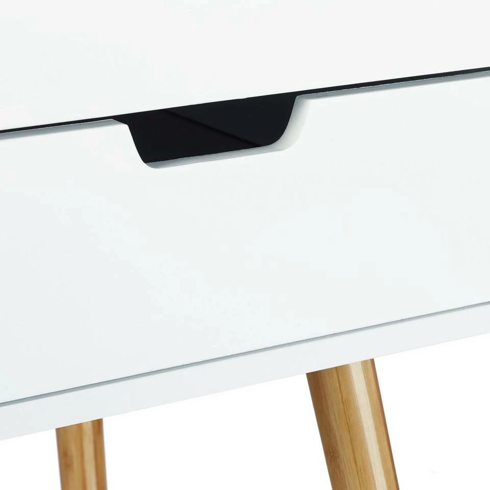Nachttisch 2 Schubladen – Im nordischen Retro-Look Der Nachttisch mit 2 Schubladen weiß durch seinen coolen Retro-Look zu überzeugen. Der Mix aus weißer Ablage und naturfarbenen Elementen erinnert an skandinavische Möbel und verleiht dem Interieur einen hellen und freundlichen Anstrich. Die breite Ablage bietet im Schlafzimmer Platz für Bücher, Zeitschriften, einen Wecker und vieles mehr. In den zwei Schubladen ist Platz für allerlei Accessoires. Aber auch als Beistelltisch im Flur oder Wohnzimmer macht der Tisch eine gute Figur.