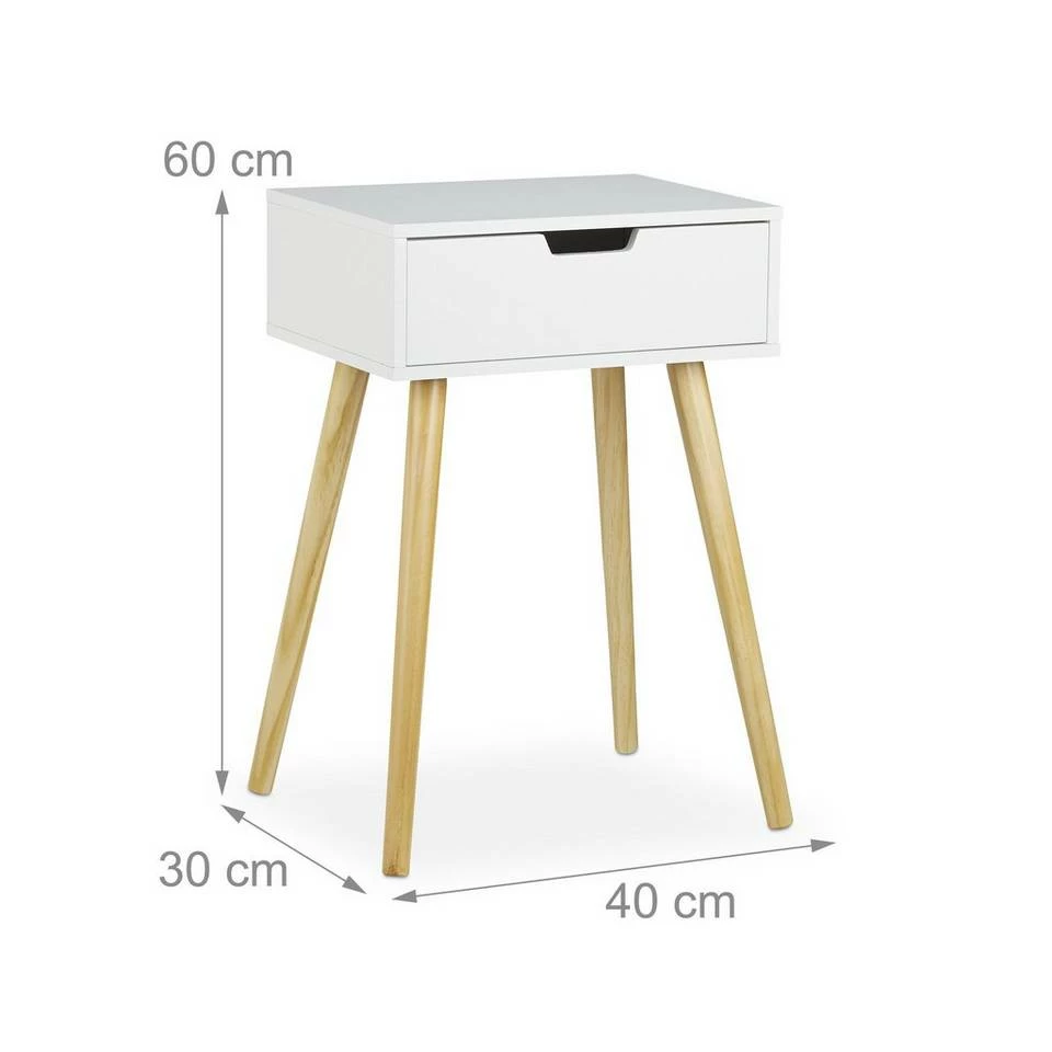- Stabil: Robuster Körper aus MDF – 4 schräge Beine aus Kiefernholz sichern den Stand der Nachtkommode