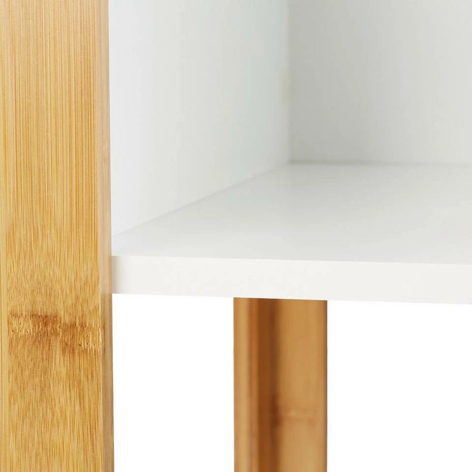 - Starke Kombi: Der weiße MDF-Corpus ergänzt sich sehenswert mit der warmen Optik der Bambus-Beine