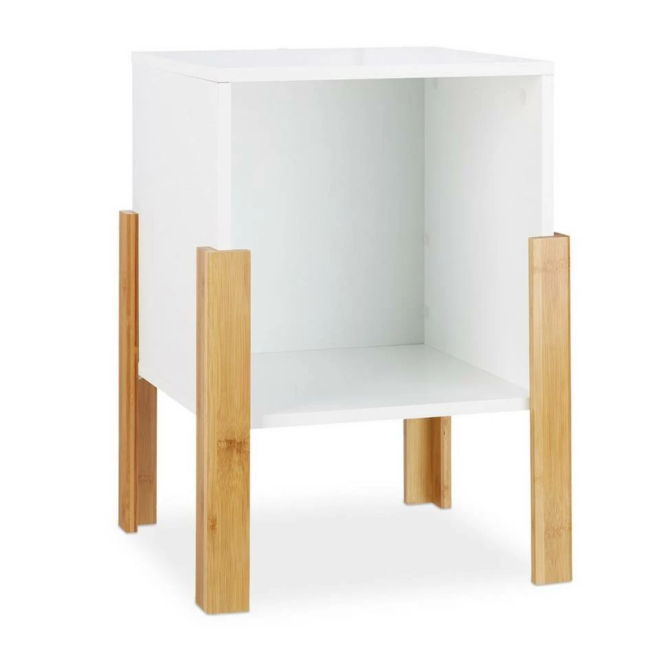 Nachtschränkchen und mehr Der Nachttisch überzeugt nicht nur als Ablagetisch im Schlafzimmer, sondern ist auch als Beistelltisch bzw. Schränkchen im Flur oder Wohnzimmer praktisch. In dem offenen Ablagefach finden kleinere Alltagsgegenstände bequem Platz. Der schnörkellos moderne Corpus in Weiß ergänzt sich erstklassig mit der natürlich warmen Optik der Bambusbeine. Diese gelungene Kombination macht den Nachtschrank zu einem Eyecatcher in jedem Raum. Ein Kippschutz verhindert, dass der Tisch aus Versehen umfallen kann.