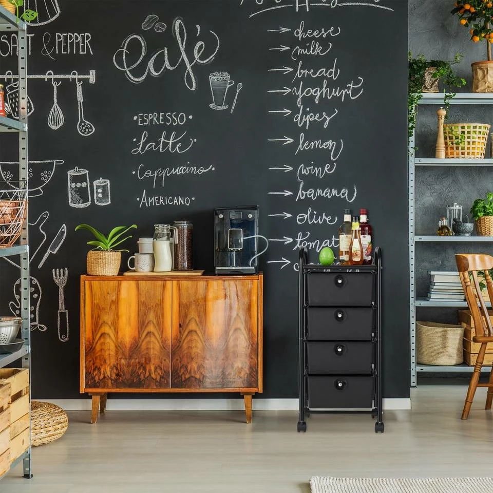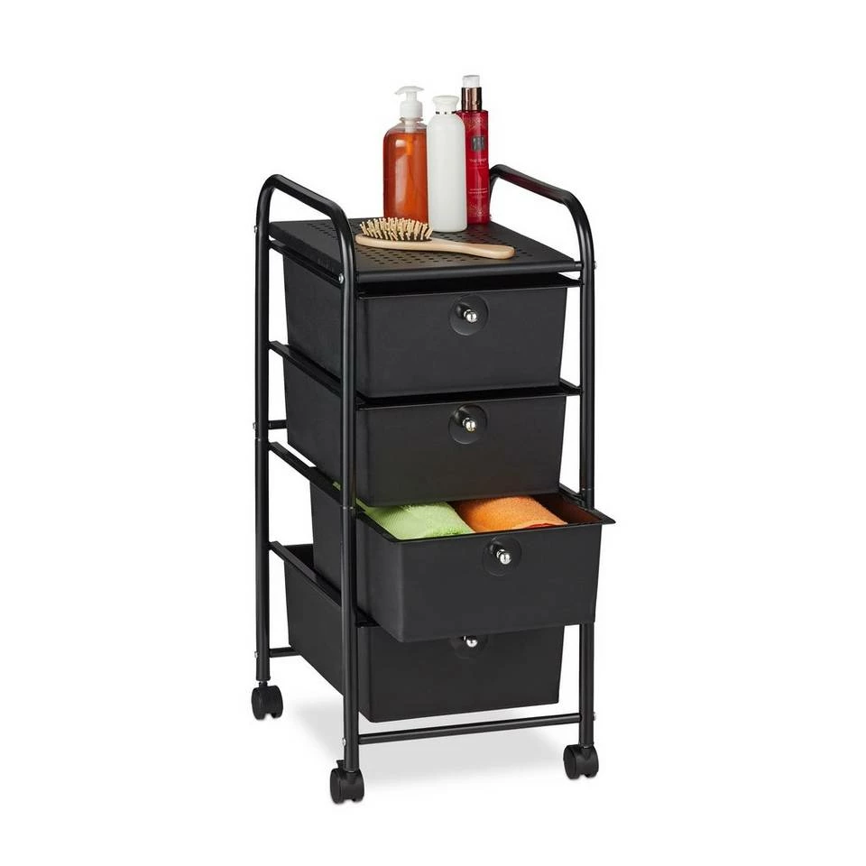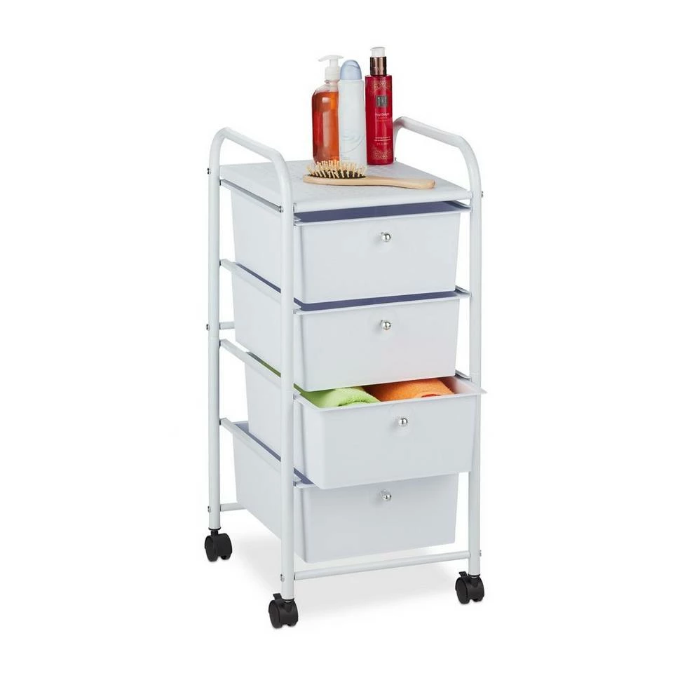 Universell nutzbarer Schubladenwagen Der Beistellwagen ist ein praktischer Helfer im Haushalt, den Sie äußerst vielseitig einsetzen können. Als Badwagen ist er ebenso geeignet, wie als Rollregal in Küche & Büro, als Bastelwagen im Kinderzimmer oder als Friseur- & Kosmetikwagen im Salon. In den 4 Schubladen aus Kunststoff können Sie all Ihre Utensilien sortieren & übersichtlich verstauen. Bei Bedarf sind die Fächer vollständig entnehmbar & leicht zu reinigen. Dank der 4 Räder lässt sich der Haushaltswagen flexibel bewegen.