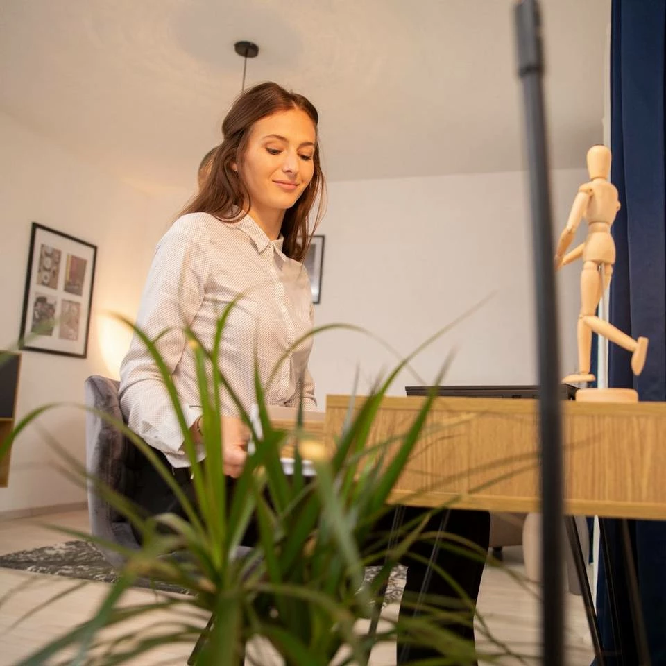 - Perfekt abgestimmt: Schubfächer in Grau und Weiß passen hervorragend zur Tischplatte in Holzoptik