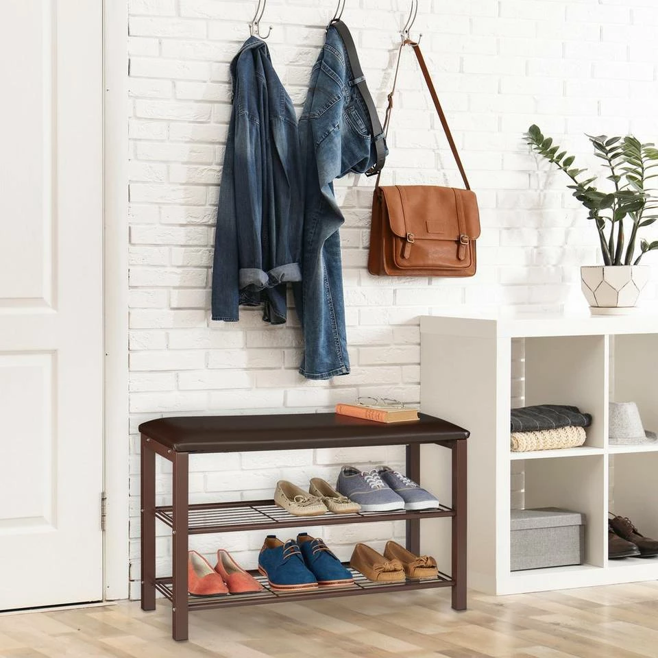 - Basics: Brauner Schuhständer mit Polsterung und Metallgestell – H x B x T: ca. 48 x 80 x 30 cm