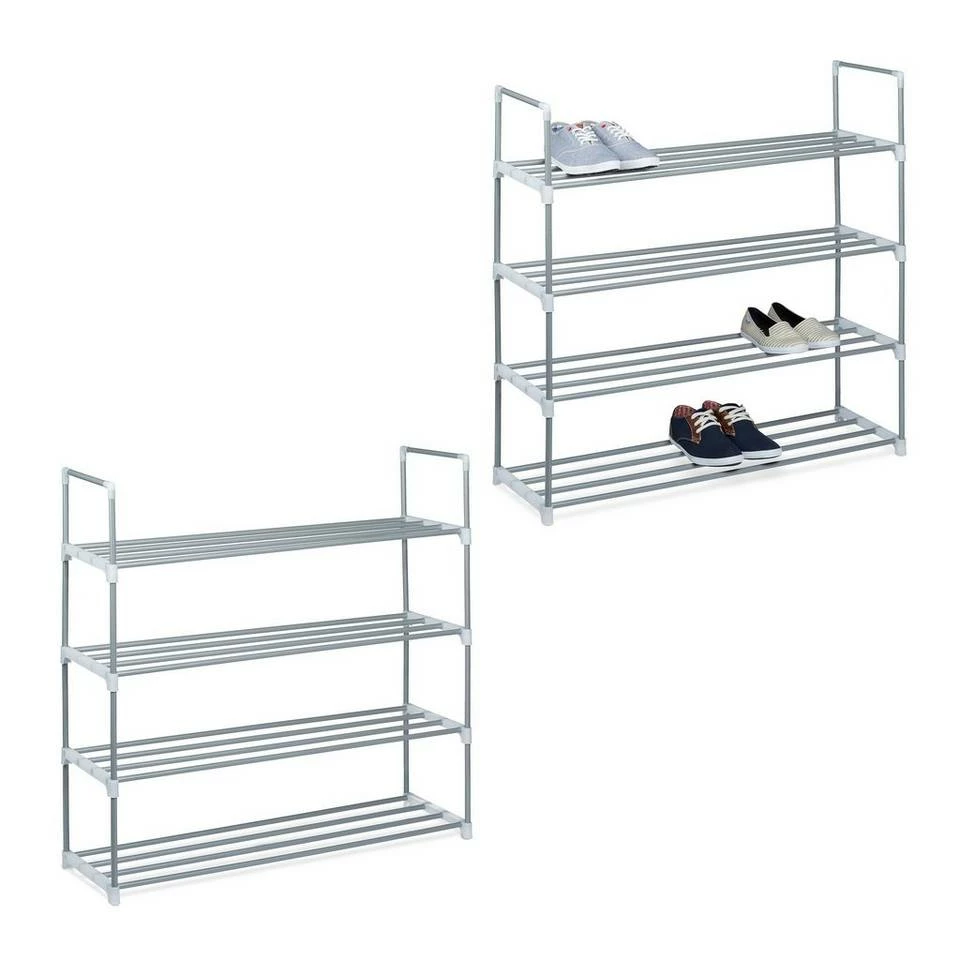 - Vielseitig: 2x silbernes Schuhregal mit 4 Ebenen – Ausreichend Platz für je 16 Paar Schuhe aller Art