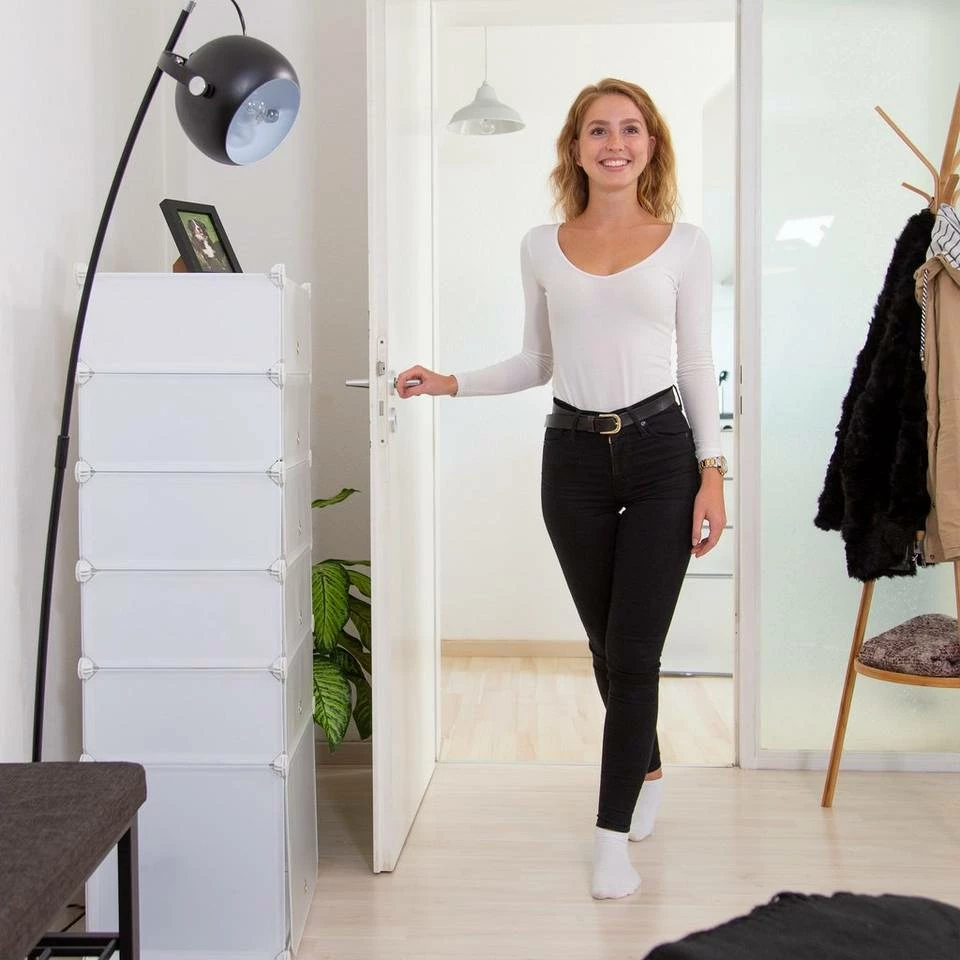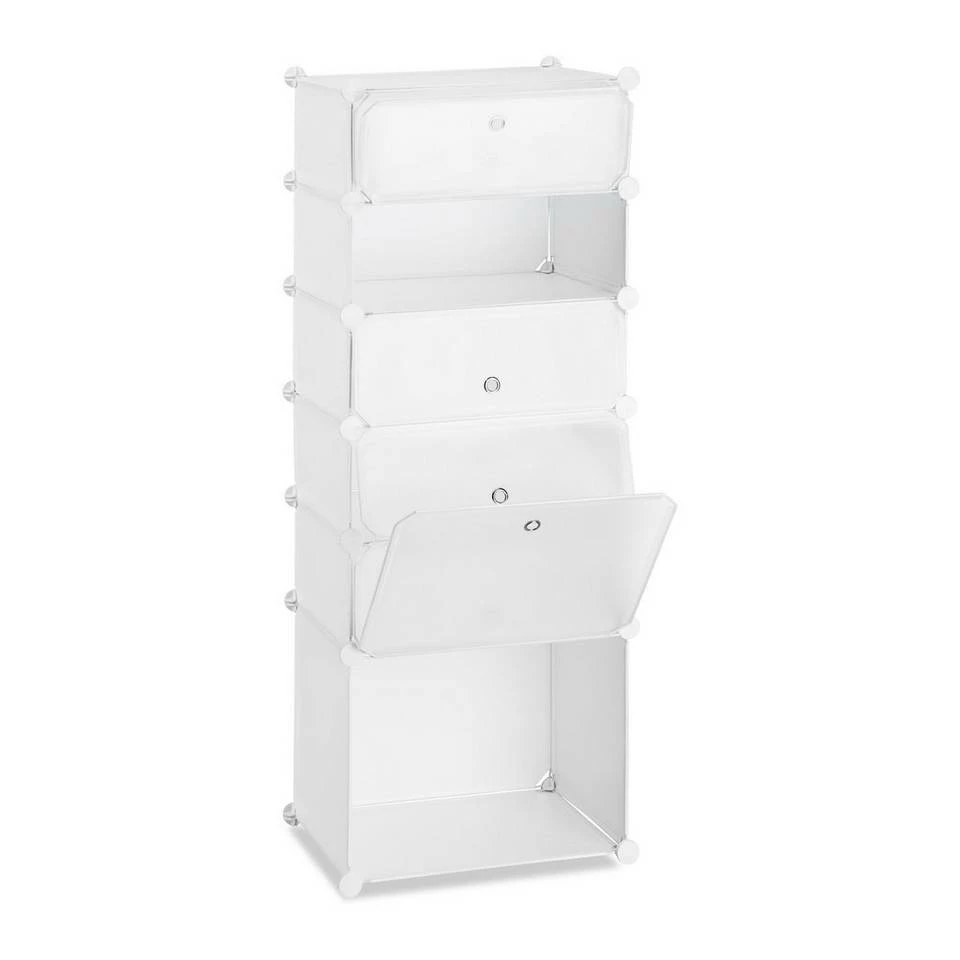 Schuhschrank mit 6 Fächern Der Besitz vieler Schuhe bringt vor allem in kleinen Wohnungen oft Platzprobleme mit sich. Dieses Schuhregal bietet die ideale Lösung und spendet Platz für mindestens 12 Paar. Durch die unterschiedlich hohen Fächer können auch Stiefel problemlos verstaut werden. Dank des praktischen Stecksystems kann das DIY- Regal blitzschnell und ohne zusätzliches Werkzeug aufgebaut werden. Dabei sind unterschiedliche Varianten möglich. Die Schuhablage ist in verschiedenen Farben erhältlich und kann sowohl als offenes Regalsystem als auch als geschlossener Schuhschrank genutzt werden.