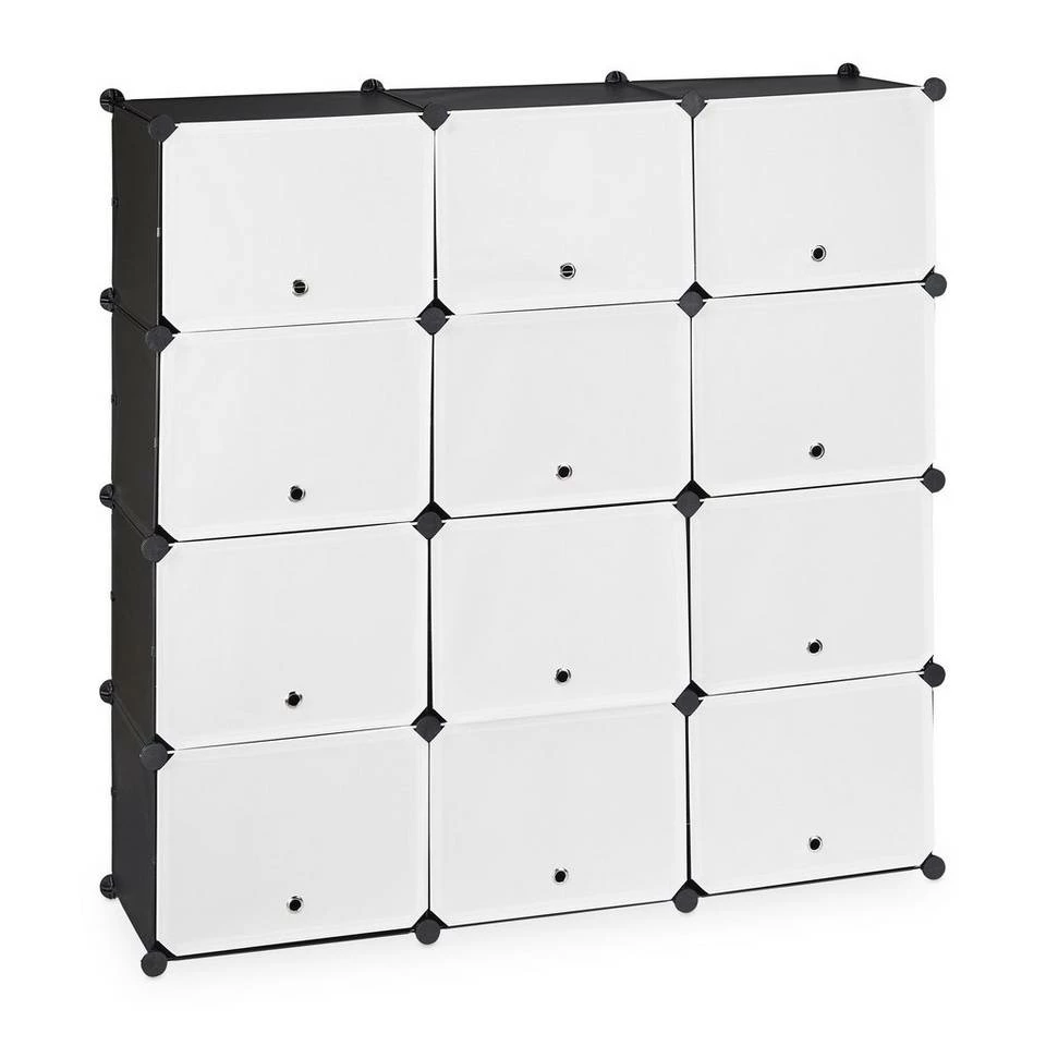 Schuhschrank mit 24 Fächern Genug von Schuhbergen, die sich im Eingangsbereich türmen? Dieser praktische Schuhschrank sorgt mit 24 Fächern für genug Platz, um Schuhe ordentlich und platzsparend zu verstauen. Das Steckregalsystem überzeugt durch ein zurückhaltendes Design in Schwarz-Weiß. Dank seines modularen Aufbaus ist das Steckregal beliebig variier- und erweiterbar und bietet Platz für etwa 48 Paar Schuhe. Das Würfelregal lässt sich schnell zusammen setzen und ist dank seines geringen Gewichts leicht transportierbar.