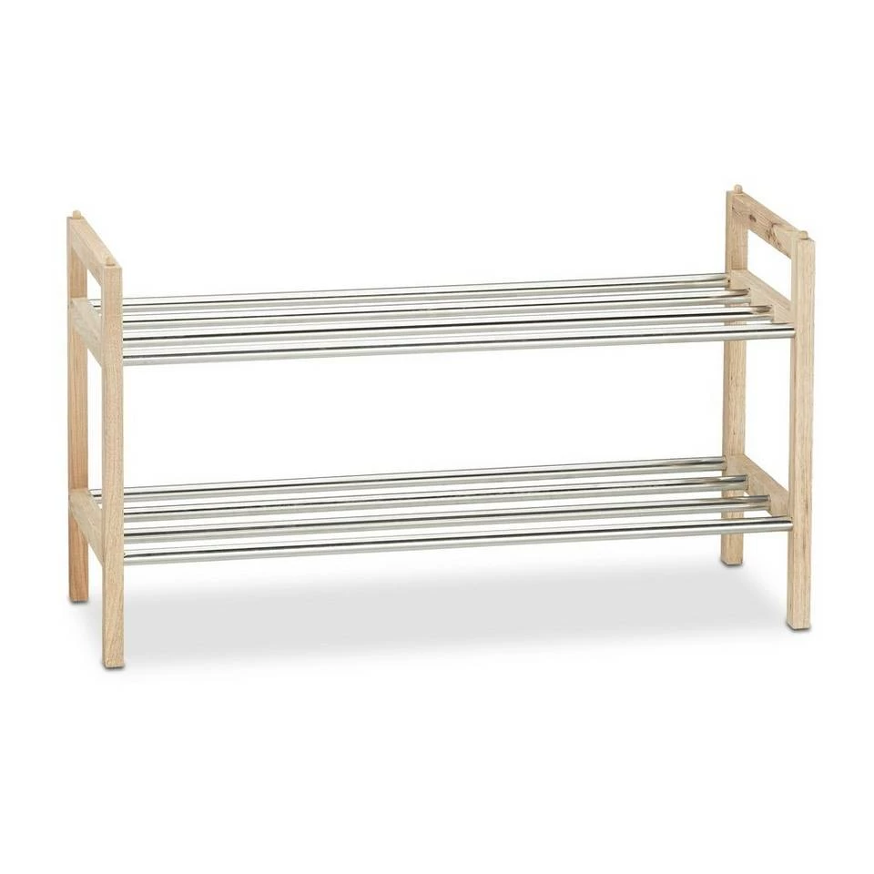 - Für 12 Schuhe: Der erweiterbare Schuhständer aus Walnuss und Edelstahl fasst 8 Paar Schuhe – Größe H x B x T: ca. 41 x 72 x 27 cm – Metallstangen formen die 2 Ablagen