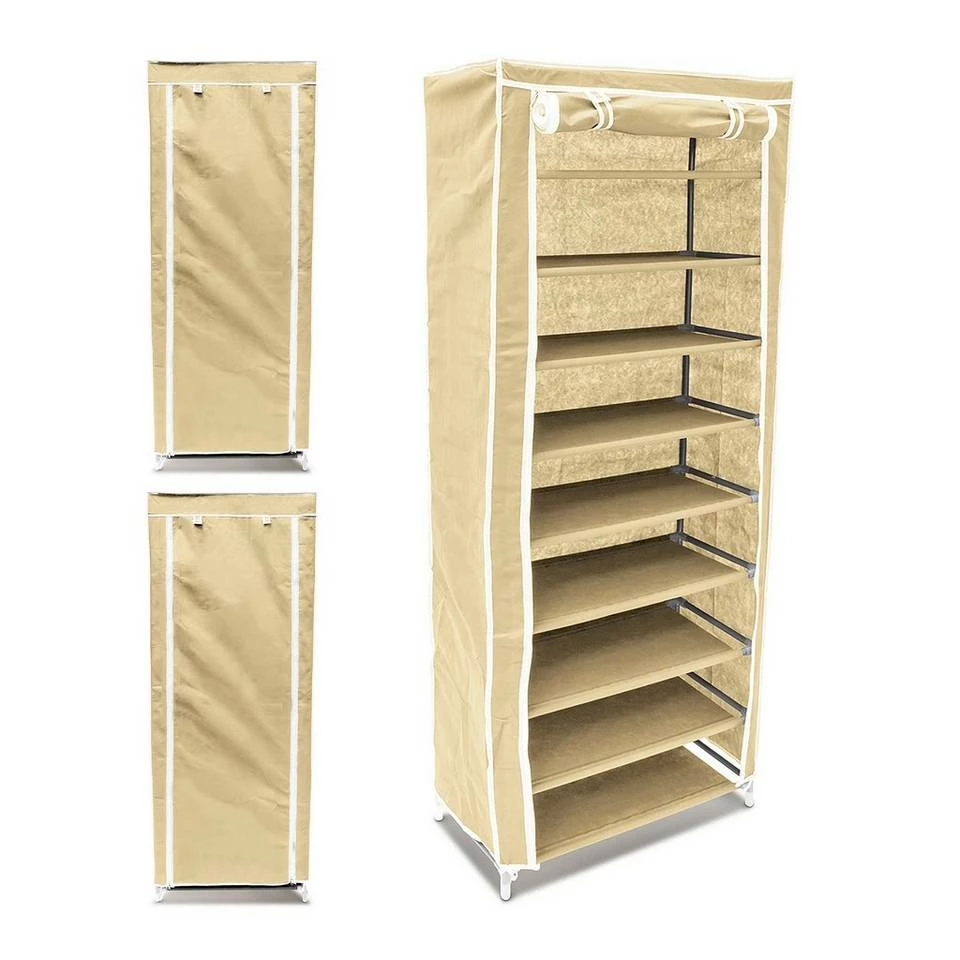 - Vielseitig: 3 x beiger Faltschrank mit je 9 Ebenen – Platz für je bis zu 36 Paar Schuhe aller Art
