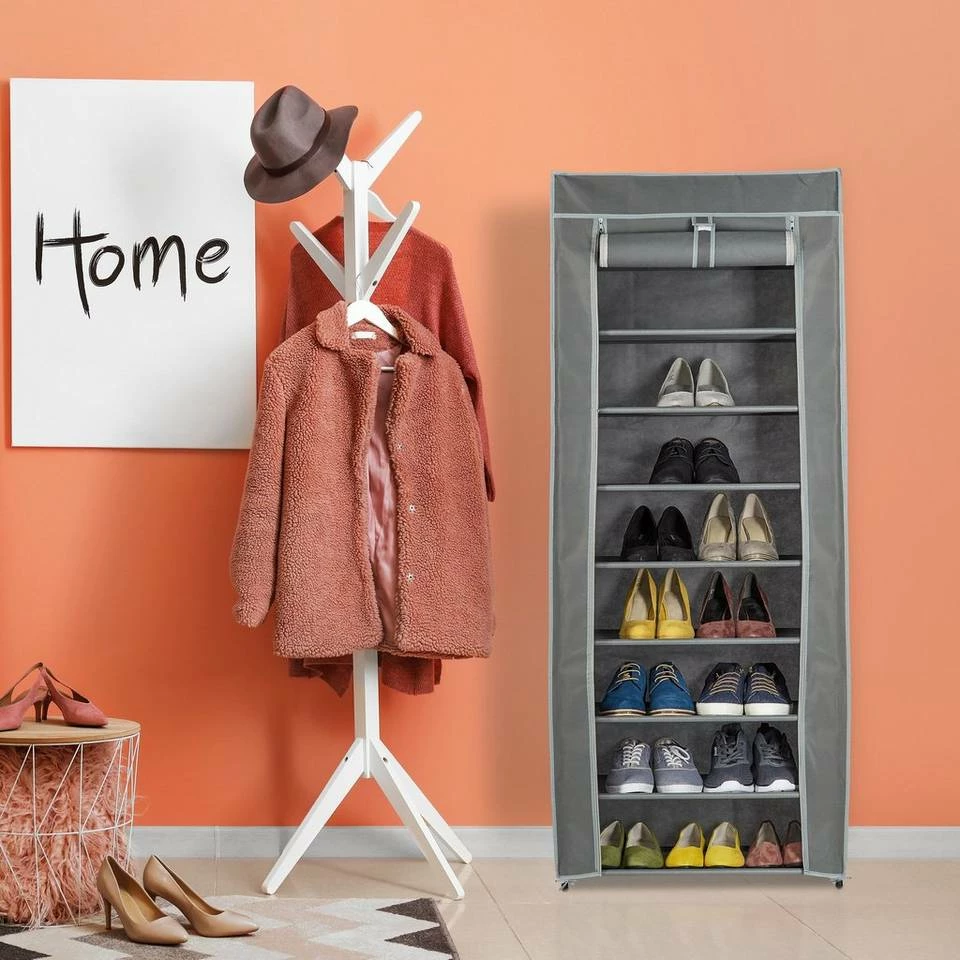 Faltschrank für 27 Paar Schuhe Verstauen Sie alle Ihre Schuhe in diesem großen Schuhständer aus Stoff. Die Schuhablage bietet in 9 Fächern Platz für ungefähr 27 Paar Schuhe. Der praktische Bezug aus Stoff schützt Ihre Fußbekleidung vor Staub, kann bei Bedarf aber auch einfach abgenommen werden, um den geschlossenen Schuhschrank in ein offenes Schuhregal zu verwandeln. Das Gestell des Schuhorganizers besteht aus einem cleveren Stecksystem und lässt sich schnell und einfach aufbauen.