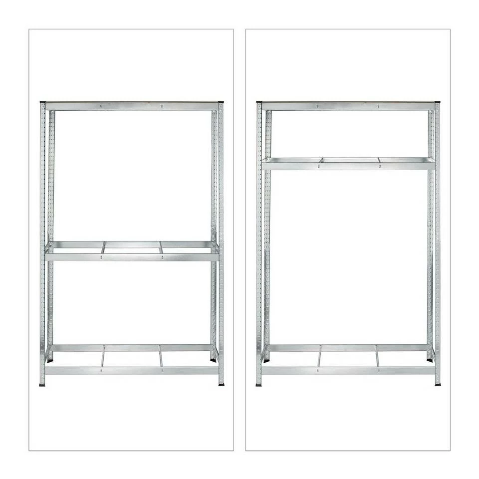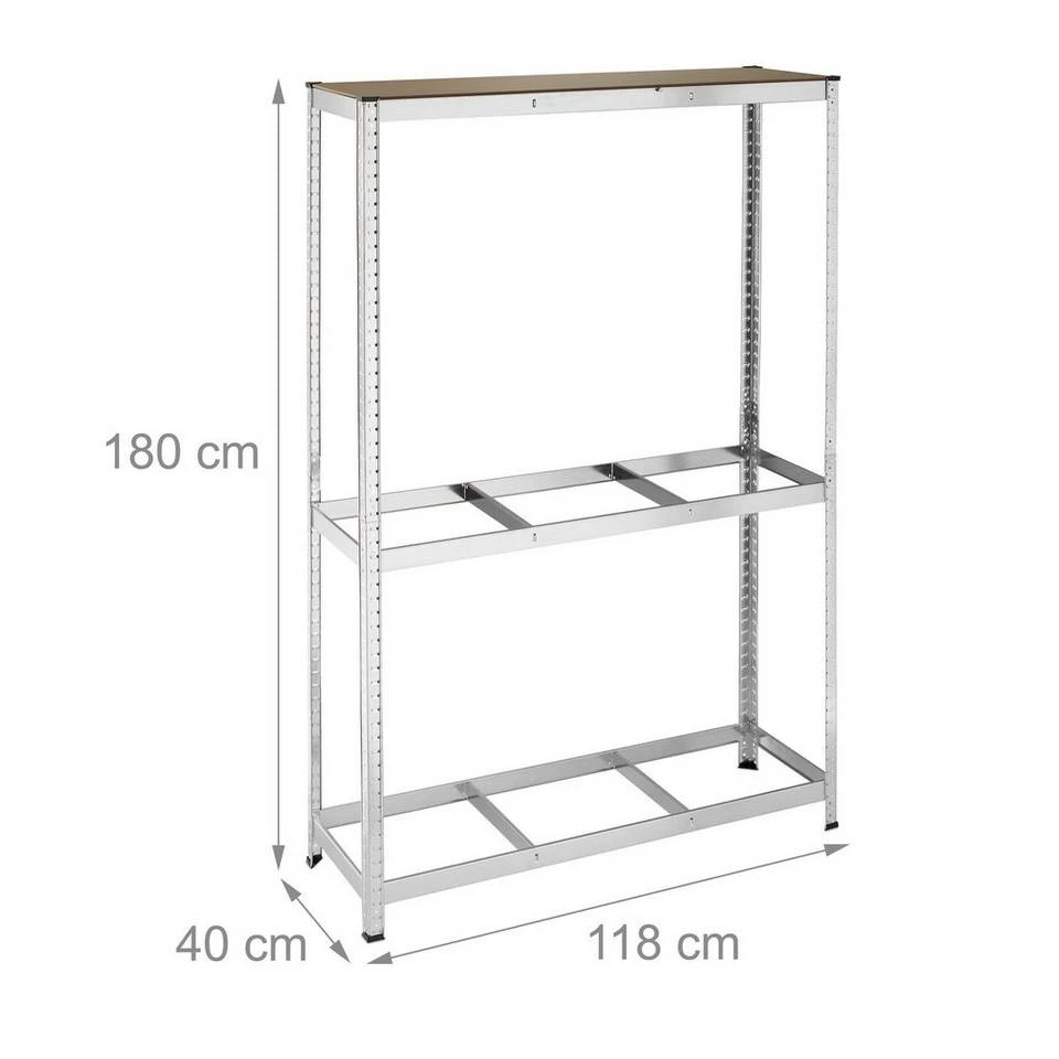 - Basics: Autoregal aus Stahl und MDF – H x B x T: ca. 180 x 118 x 40 cm – Trägt ca. 265 kg pro Ebene
