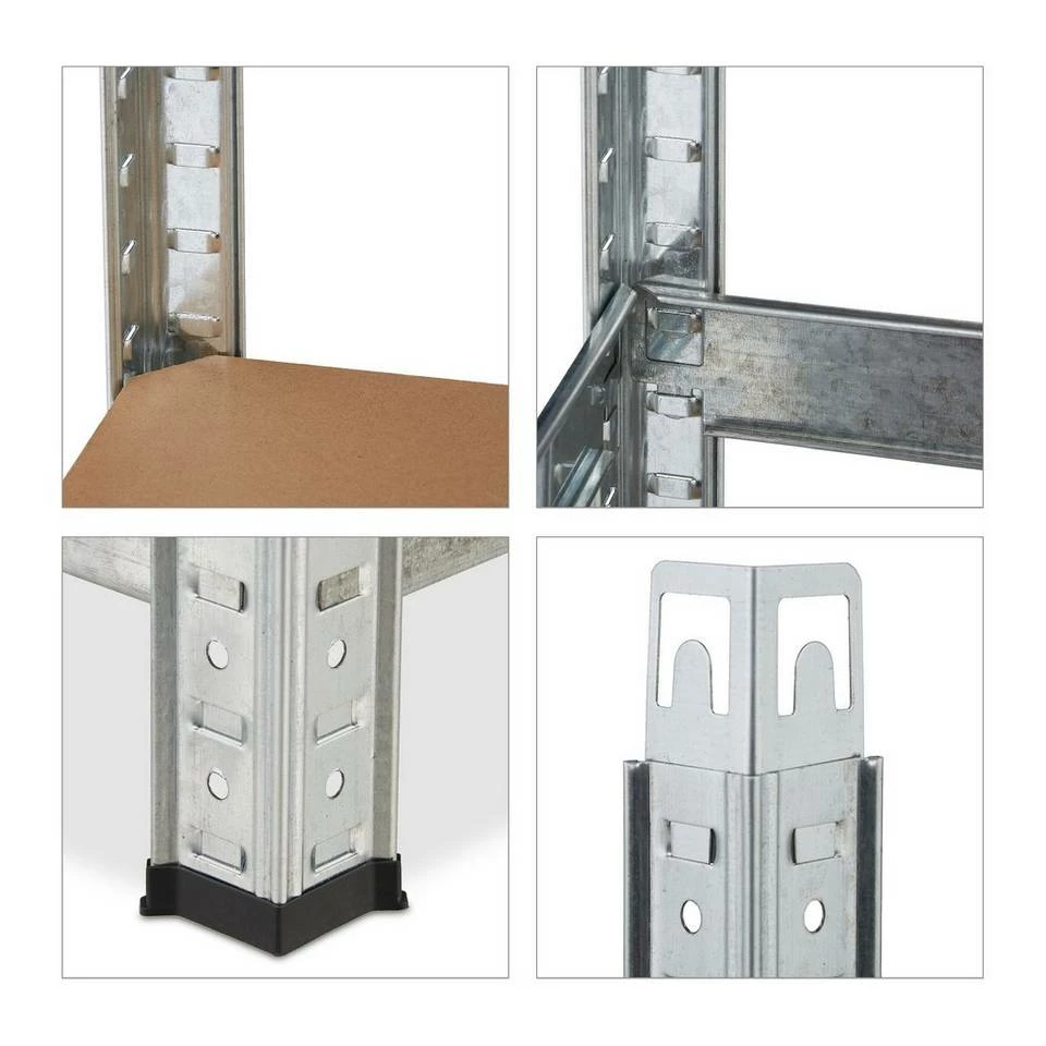 Verzinktes Kellerregal mit 5 Fachböden In Lagerräumen, wie Keller, Garage oder Abstellkammer sollte stets Ordnung herrschen. Mit diesem großen Werkstattregal sorgen Sie für Übersicht und können zugleich schwere Geräte sicher verstauen. Auf den 5 Ablagen des Regals können Werkzeuge, Maschinen, Reinigungszubehör und vieles mehr aufbewahrt werden. Die Größe der Gegenstände spielt dabei keine Rolle, da Sie die Höhe der Ebenen selbst bestimmen können. Das Mehrzweckregal wird durch Zusammenstecken aufgebaut & ist somit im Nu einsatzbereit. Tipp: Das praktische Stecksystem benötigt keinerlei Schrauben, daher funktioniert der Aufbau schnell und einfach. Sie benötigen einen Gummihammer. Bauen Sie das Regal mit Handschuhen auf. Unter Umständen brauchen Sie einen Schraubenzieher, um die Zinken leicht vor zu biegen.