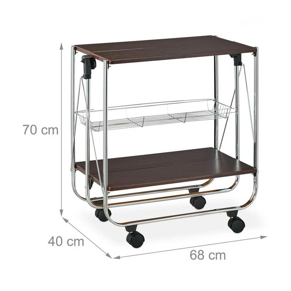 Modernder Mehrzweckwagen zum Klappen Der klappbare Servierwagen besticht durch Funktionalität und ein modernes Design. Mit diesem Rollwagen kannst Du Geschirr, Flaschen, ganze Mahlzeiten oder Tisch-Gedecke bequem transportieren. Der Metallkorb eignet sich bestens für Obst oder den Brotkorb. Zudem ist der Küchenrollwagen in wenigen Sekunden zusammengeklappt. Drücke dazu einfach die beiden Hebel nach oben und falte den Wagen in der Mitte zusammen. So verstaust Du ihn platzsparend in der Küche oder der Abstellkammer.