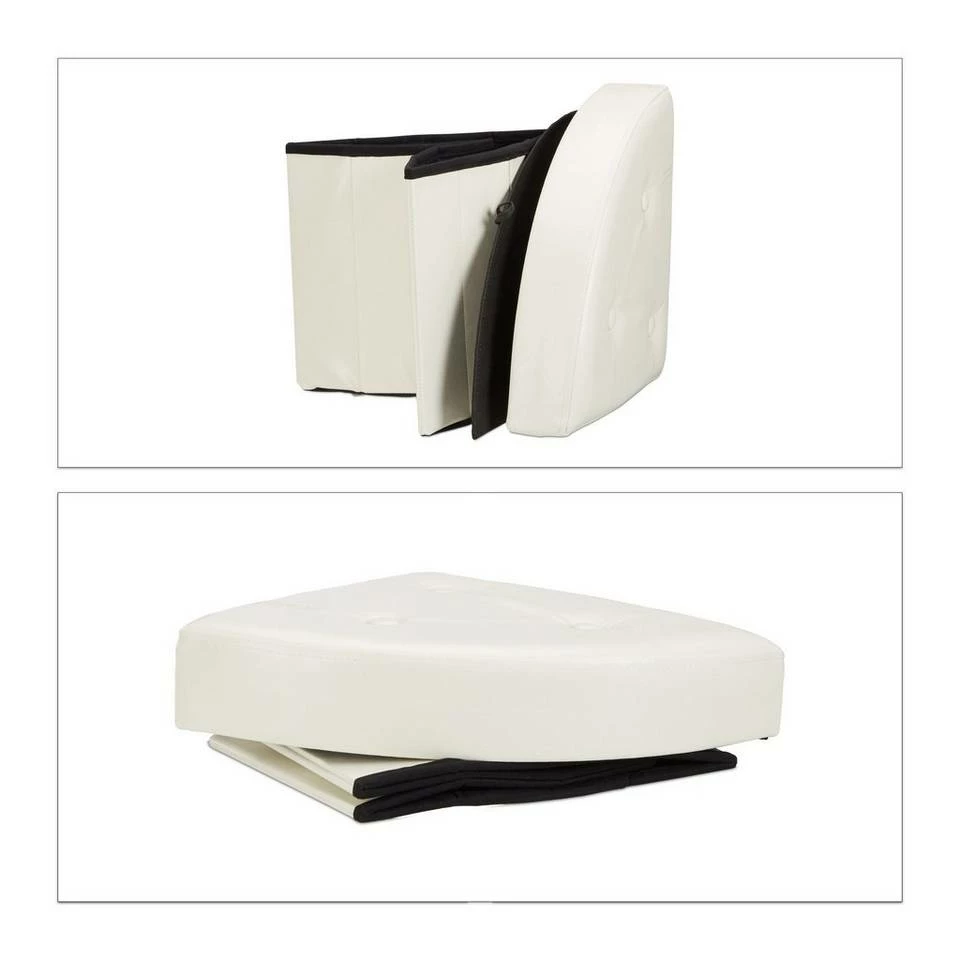Eckiger Hocker zum platzsparenden Verstauen Ob für Flur, Schlafzimmer oder andere Wohnbereiche, der eckige Hocker mit Aufbewahrung ist eine clevere 2-in-1-Lösung. Der Sitz aus weichem Kunstleder ist bequem gepolstert. Der faltbare Sitzhocker ist schnell auf- und abgebaut. Die kleine Sitzgelegenheit passt dank ihrer Form platzsparend in jede Zimmerecke. Verstauen Sie Dinge des Alltags in der praktischen Aufbewahrungsbox sichtgeschützt. Der vielseitig einsetzbare Hocker ist in verschiedenen Farben erhältlich.