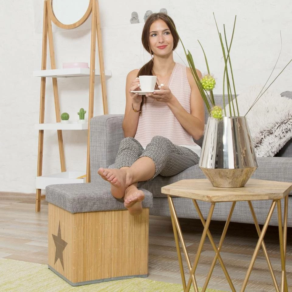 - Sitzhocker im natürlichen Designs: Bambus-Design und Stern-Motiv machen den Sitzwürfel zum Hingucker in Bad, Wohnzimmer oder Wintergarten