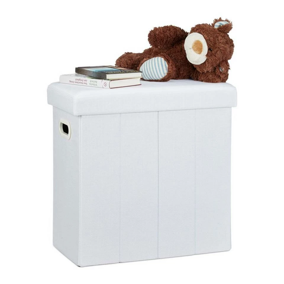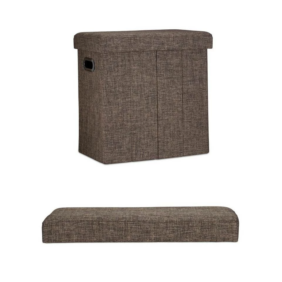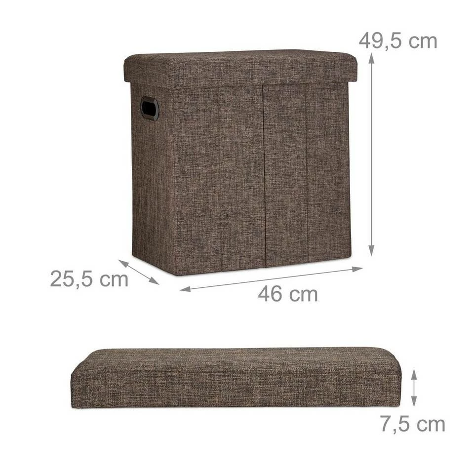 Falthocker in Leinen-Optik Dieser Falthocker ist nicht nur eine bequeme Sitzgelegenheit, sondern verbirgt in seinem Inneren einiges an zusätzlichem Stauraum. Rund 50 l Fassungsvermögen stehen Ihnen zur Verfügung, wenn Sie Spielzeuge, Zeitschriften, Schuhe oder andere Dinge platzsparend verstauen möchten. Die Aufbewahrungsbox im rustikalen Leinen-Look fügt sich bestens in viele Einrichtungen ein. Ob Flur, Bad, Wohn- und Kinderzimmer: Der belastbare Sitzhocker macht überall eine gute Figur. Sollte die Sitztruhe ihren Dienst erfüllt haben, falten Sie sie einfach wieder zusammen. Zusammengefaltet verbraucht die rund 3 kg schwere Faltbank kaum Raum, sodass sie auch als Begleiter für unterwegs praktisch ist.