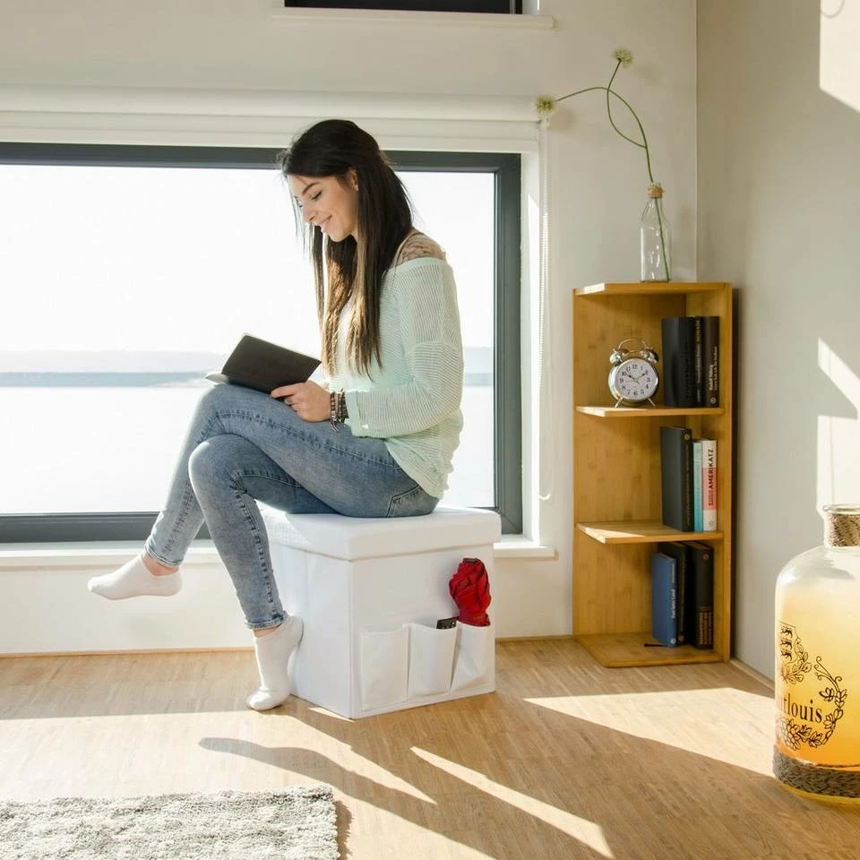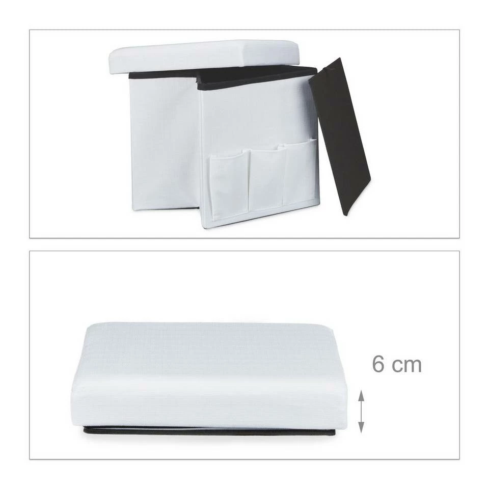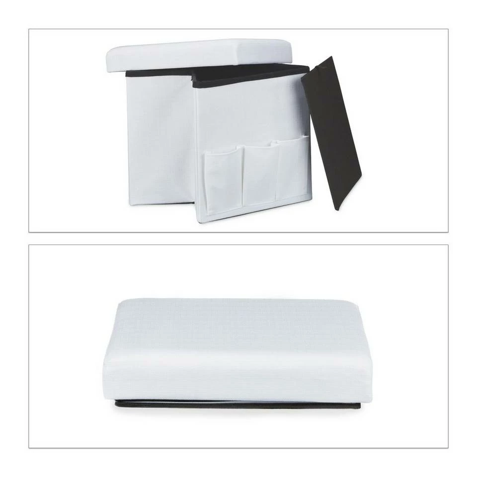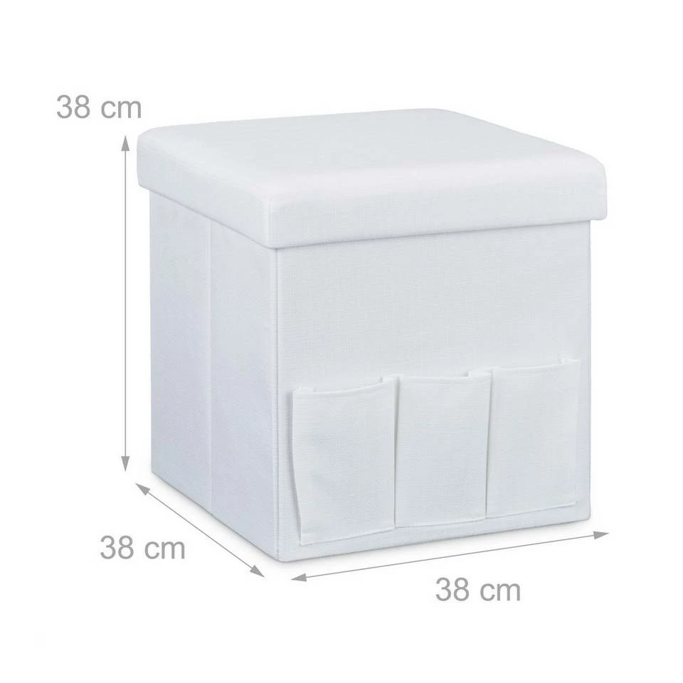 Faltbarer Sitzhocker aus Leinen mit 3 praktischen Taschen Gegenstände wie Zeitschriften oder Kissen können schnell im Stauraum des Sitzhockers verschwinden. Bei Platzmangel lässt sich der Sitzhocker in Windeseile zusammenfalten. Die robuste Verarbeitung gepaart mit dem natürlichen Look machen den Sitzhocker zum optimalen Accessoire für Ihre Wohnung. Suchen Sie eine passende Farbe für sich heraus und holen Sie den Sitzwürfel in Ihre Wohnung!
