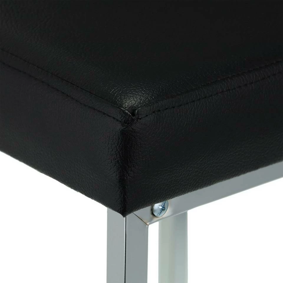 - Design: Eleganter Polsterhocker im Mix aus verchromtem Metall und schwarzer Sitzfläche in Lederoptik