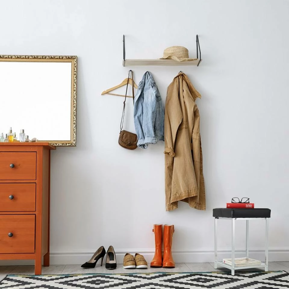 - Details: Platzsparender Dielenhocker aus Stahl, PVC und PP – Maße H x B x T: ca. 47 x 33 x 33 cm