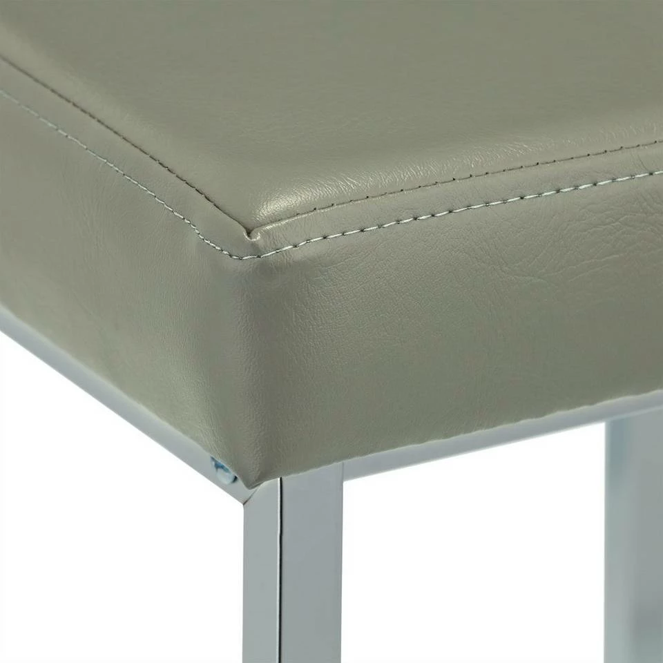 - Design: Eleganter Polsterhocker im Mix aus verchromtem Metall und grauer Sitzfläche in Lederoptik
