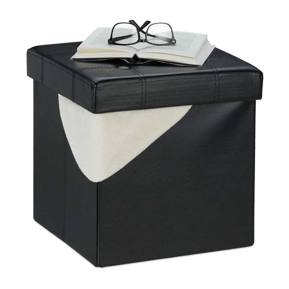 Eckiger Kunstlederhocker mit Stauraum Der praktische Hocker kann sowohl als Sitzgelegenheit sowie zur Aufbewahrung genutzt werden. Im Inneren ist genügend Platz für die Kuscheldecke, Zeitschriften & Spielzeug. Die Polsterung des Sitzwürfels sorgt für ein angenehmes Sitzgefühl, ist aber auch als Ablage für die Füße nach einem harten Arbeitstag die richtige Wahl. Der belastbare Sitzhocker überzeugt mit seiner edlen Lederoptik, die sich gut in moderne Einrichtungen einfügt. Der Hocker lässt sich bei Verschmutzungen einfach abwischen.