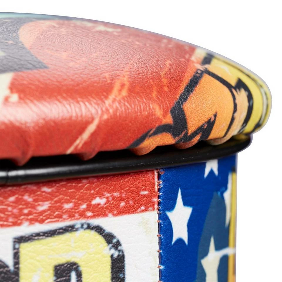 - Mit Motiv: Runder Sitzhocker mit schickem Pizza-Motiv – Route 66-Schild – Charakteristische Stars and Stripes Optik im Vintage Stil