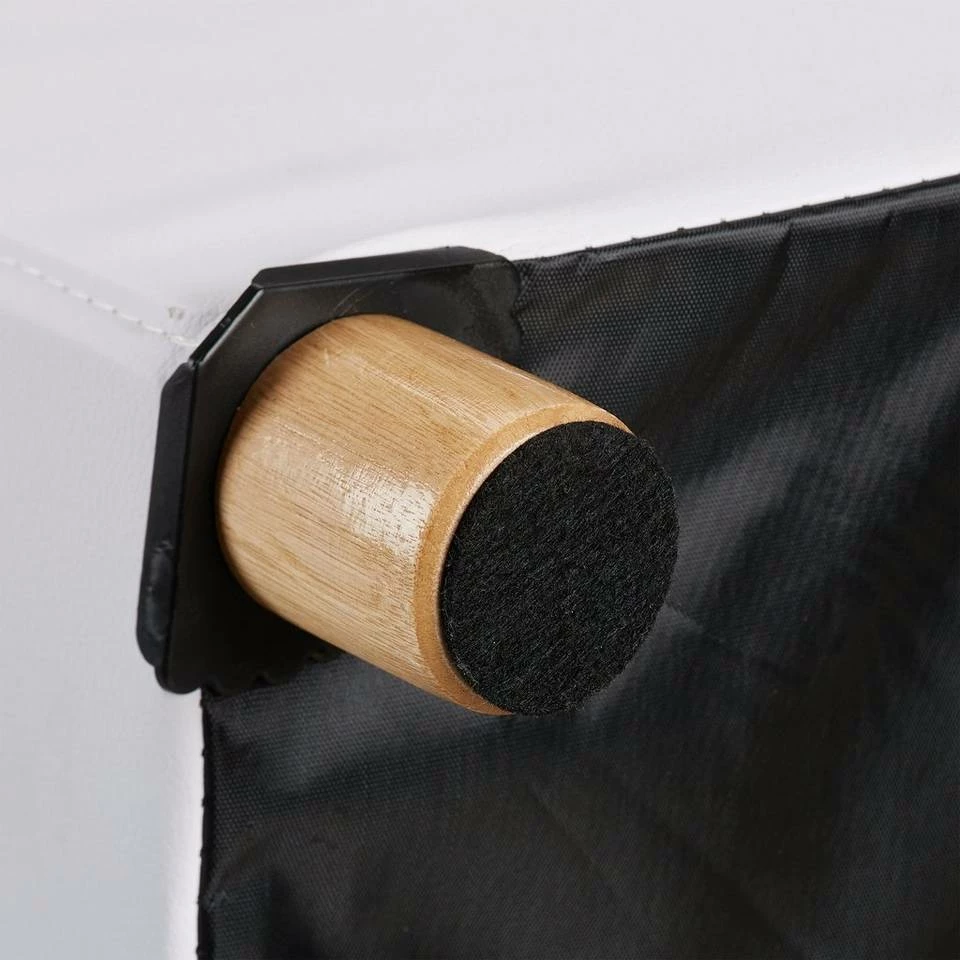 - Dekorativ: Standbeine aus natürlich gemasertem Holz setzen zum Kunstleder-Bezug attraktive Akzente