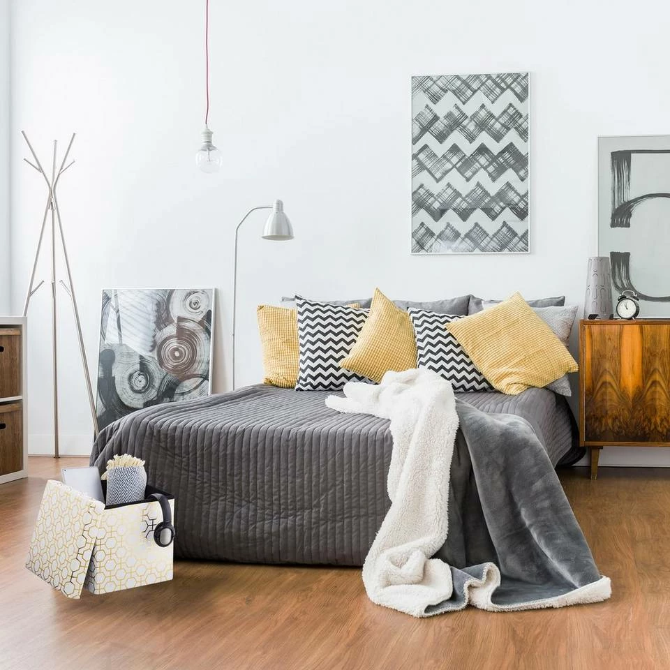 - Design: Sitzwürfel mit Art Deco Muster in Gold-Weiß – Eleganter Stil für Flair des alten Hollywoods