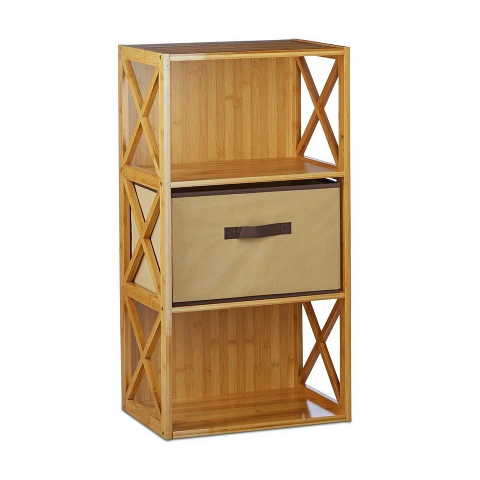 Regal Bambus mit Faltbox Das Bambusregal wird zur hübschen Ablage in Ihrer Wohnung. Besonders in Räumen mit wenig Platz schafft es ordentlich sortierten Stauraum. Die faltbare Box ist dabei besonders für kleinteilige und lose Sachen geeignet. Nehmen Sie Wolle, Zeitschriften, Elektronik uvm. elegant aus dem Blickfeld. Der Einlegeboden sorgt hier für maximale Stabilität. Stellen Sie sich das Regal in den Flur, Eingangsbereich oder die Stube. Dank des widerstandsfähigen Bambus ist es ideal als Badregal geeignet.
