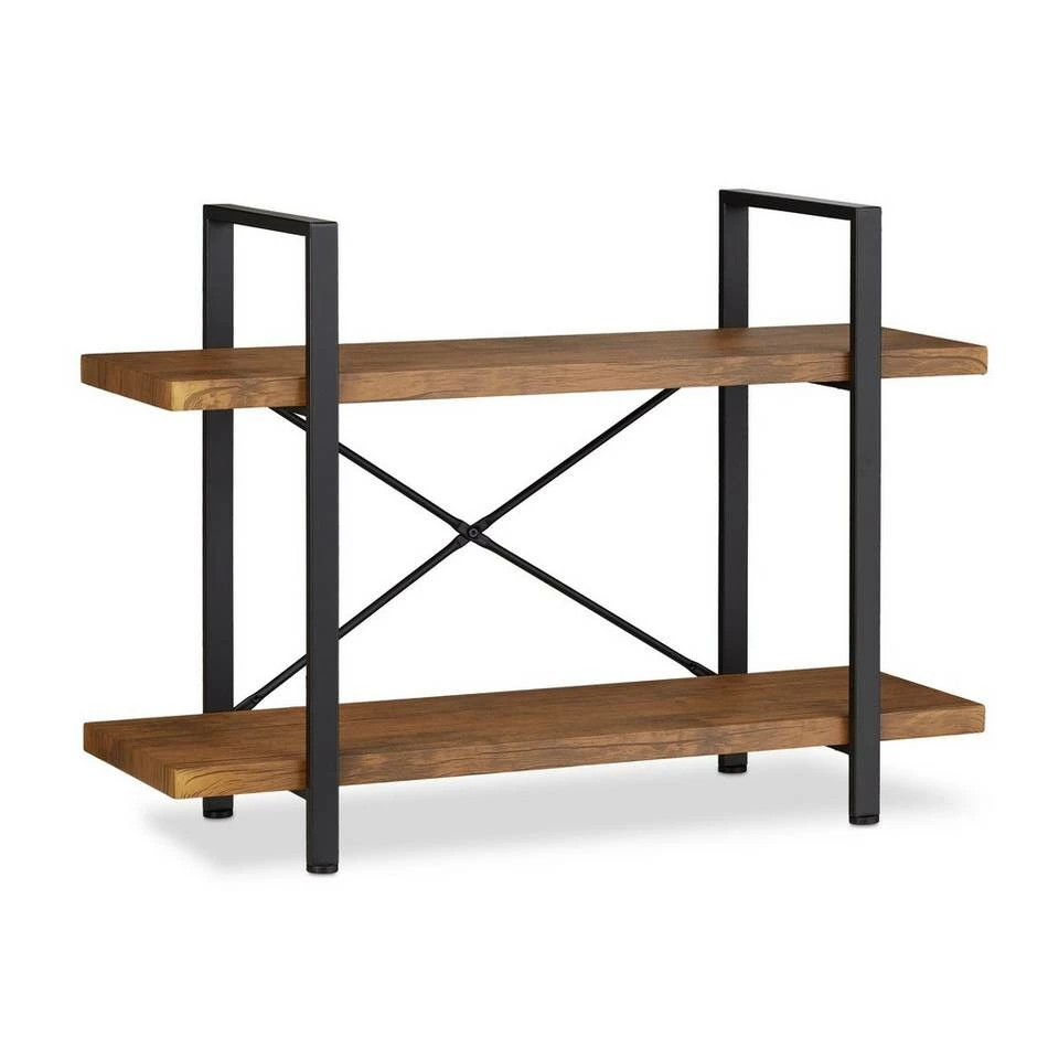 - Design: Büroregal mit schwarzem Metallgestell und Ablagen in brauner Holzoptik für rustikales Flair