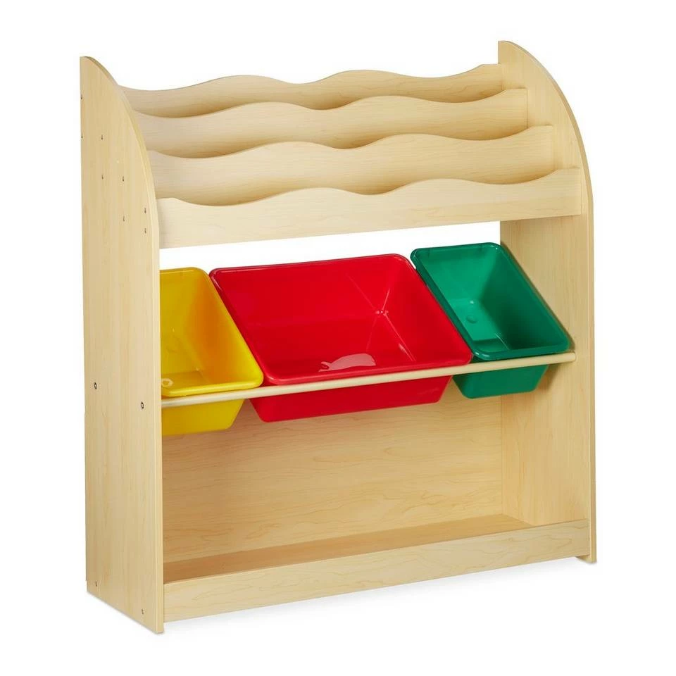- Aufbewahrung: Niedriges Kinderregal in Holzoptik – Spielzeug Organizer für Ordnung im Kinderzimmer