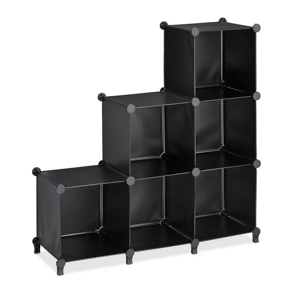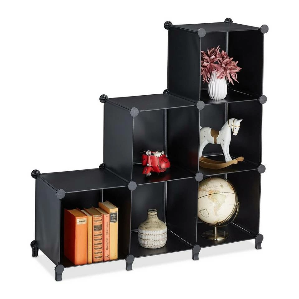Erweiterbares DIY-Regal für Dachschrägen und mehr Wenn Du keine Lust auf schwere, massive Möbel hast, ist dieses flexible Regalsystem mit 6 Fächern zu empfehlen. Die Komponenten bestehen aus pflegeleichtem Kunststoff und sind mit Metall verstärkt. Dank des einfachen Stecksystems kannst Du das Kunststoffregal schnell und einfach aufbauen. Ob als Stufenregal unter Dachschrägen, als Bücherregal im Wohnzimmer oder zur Aufbewahrung von Spielzeug im Kinderzimmer: Stecke das Würfelregal auf Deinen Bedarf abgestimmt jederzeit individuell zusammen.