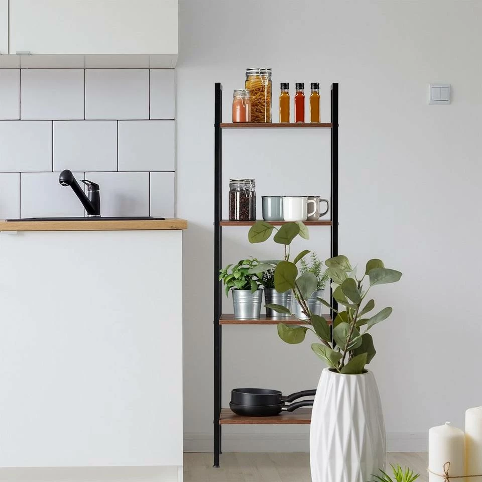 - Aufbewahren: Mit 4 unterschiedlich großen Ablageflächen schafft das Leiterregal ausreichend Stauraum
