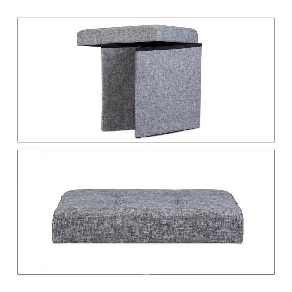 Praktischer f altbarer Sitzhocker Decken, Zeitschriften oder Spielzeug können einfach im Inneren des Sitzhockers verstaut werden. Zudem ist der Sitzwürfel in Sekundenschnelle faltbar und so rasch aus dem Weg geräumt. Der widerstandsfähige Bezug aus Leinen versprüht einen kernigen, natürlichen Charme in Ihrer Wohnung. Suchen Sie sich die passende Farbe aus und holen Sie sich Ihren Sitzwürfel nach Hause.