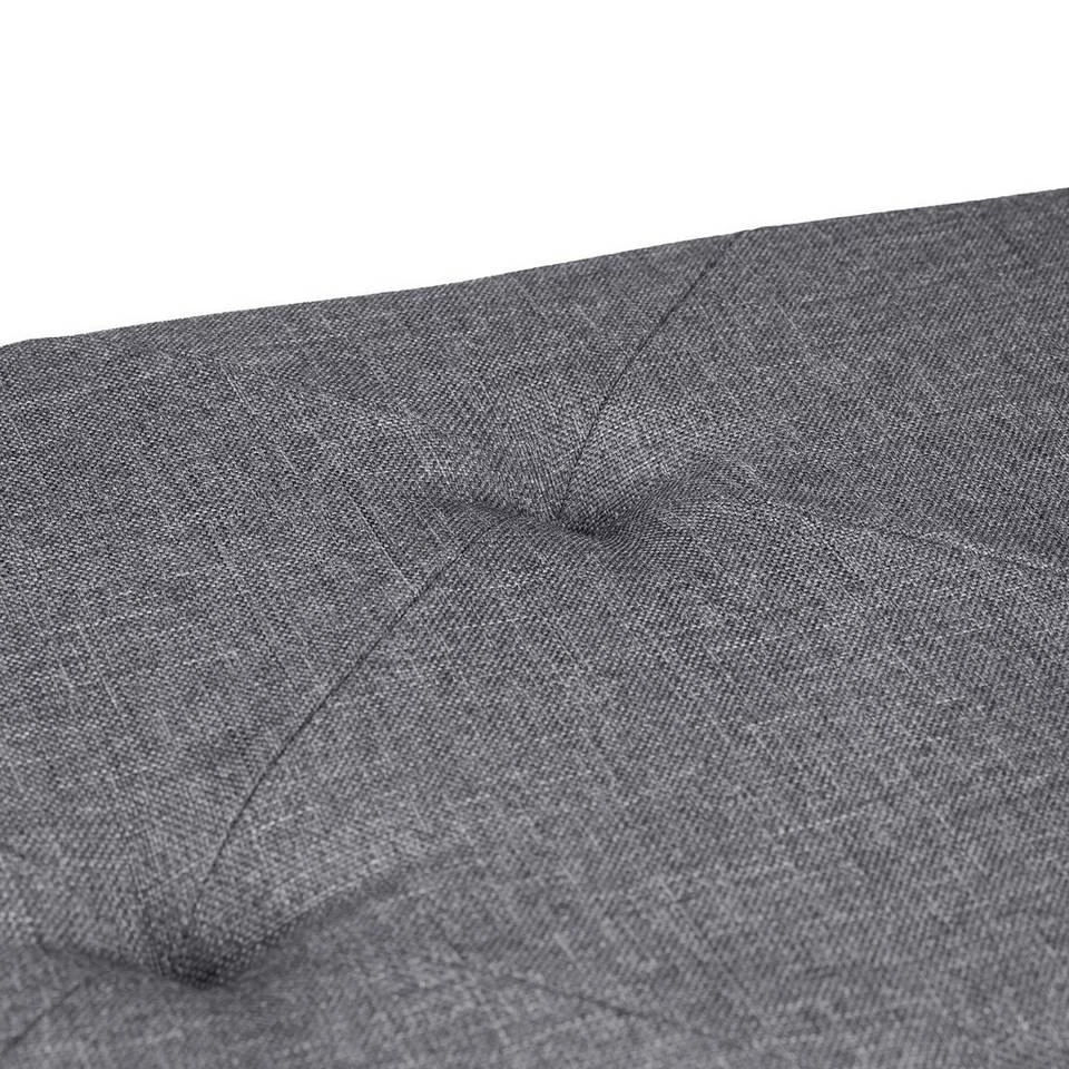 - Design: Dekorativer Stauraumhocker mit grauem Bezug in Leinenoptik und Deckel mit Steppmuster