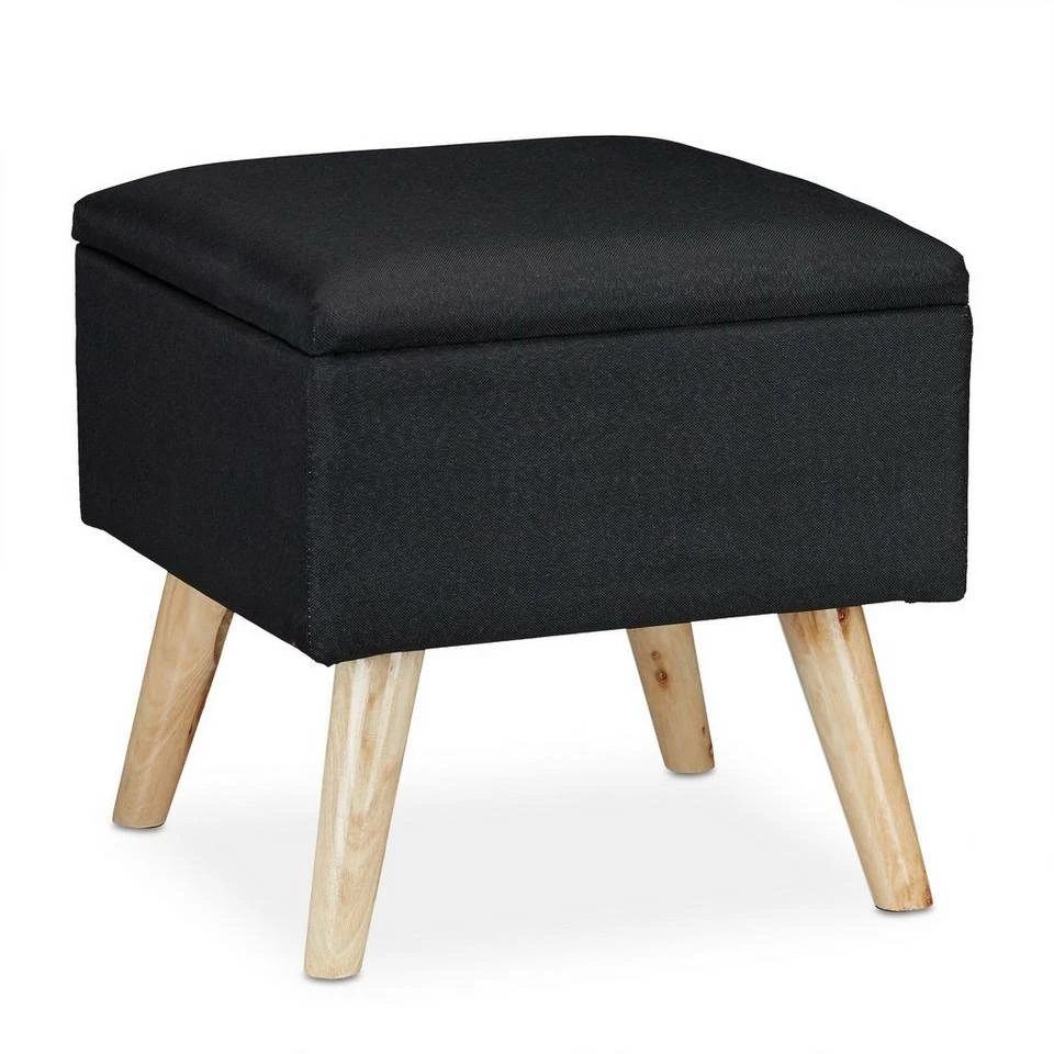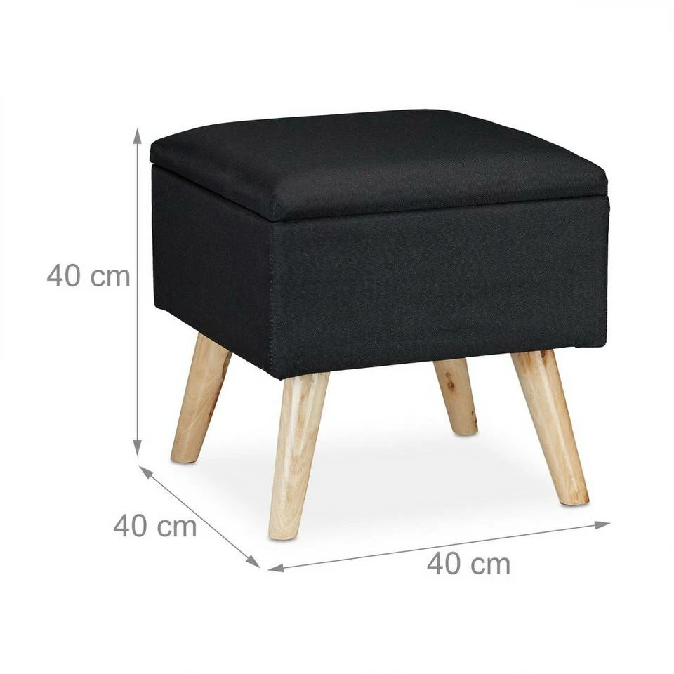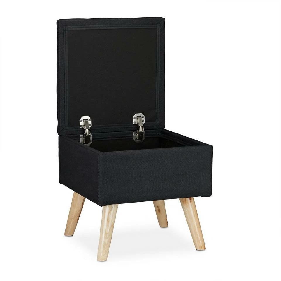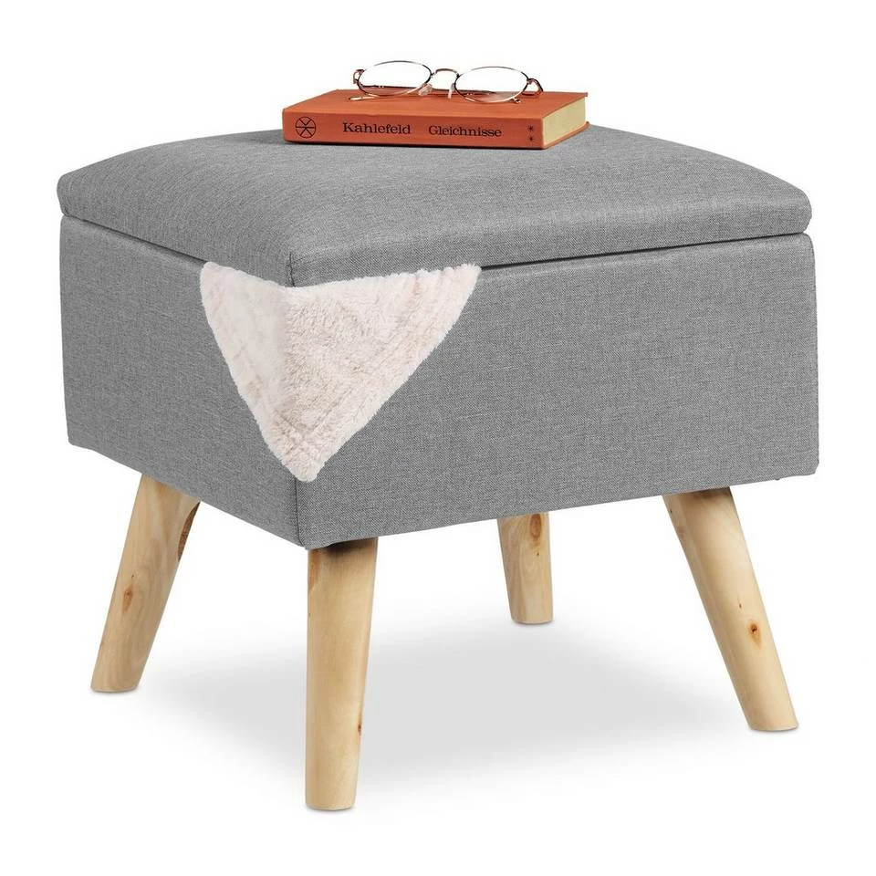- Mit Stauraum: Im Aufbewahrungshocker lassen sich eigene Sachen verstauen – Deckel mit Scharnieren