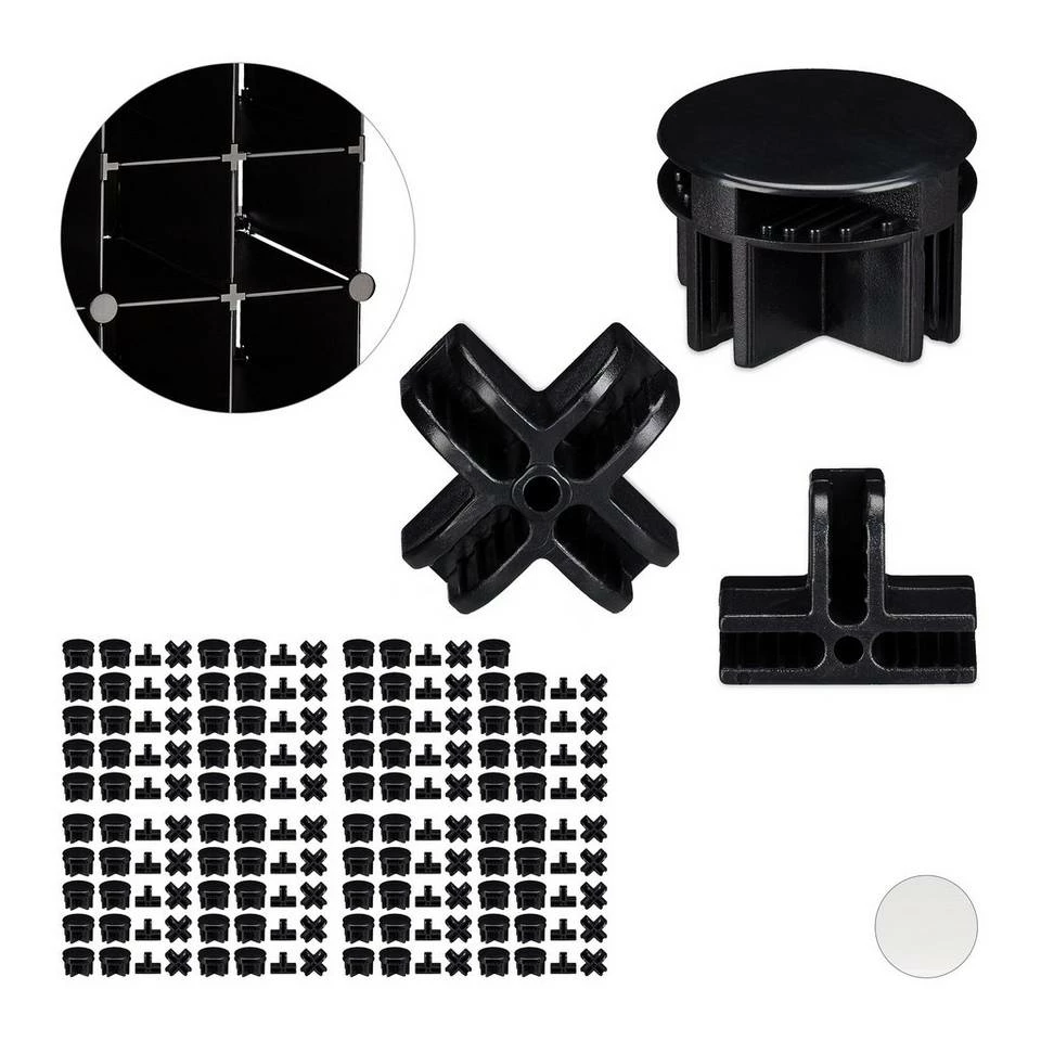 Steckregal Verbindungsstücke in Schwarz Die Regalsysteme von Relaxdays sind die richtige Wahl für Sie, wenn Sie gerne Ihre eigenen Möbel zusammenbauen. Die praktischen Steckregalsysteme sind leicht und lassen sich mit wenigen Handgriffen aufbauen. Dazu sind Steckverbindungen obligatorisch. Dieses 160er Set besteht aus 80 Haupt- und je 40 T- und X-förmigen Plastikverbindungsstücken, mit denen Sie Ihre Steckregale beliebig erweitern können. Das Material der Regalsystem Verbinder ist kratz- und schlagfest und sehr stabil.