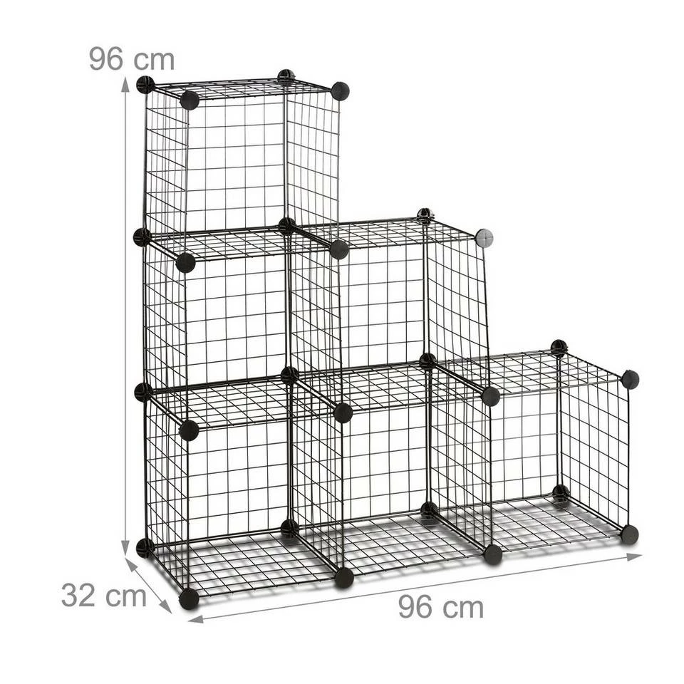 Stufenregal aus Drahtgitter Dieses praktische Stufenregal macht in jedem Zimmer eine gute Figur. Nutzen Sie die 6 quadratischen Fächer zum Verstauen von Büromaterialien, Kleidung, Küchenutensilien, Spielzeug, Büchern, Werkzeug uvm. Das handliche Stecksystem ermöglicht einen schnellen und unkomplizierten Aufbau des Regalsystems, bei dem Sie Ihrer Kreativität freien Lauf lassen können. Die einzelnen Module lassen sich beliebig zusammenstecken, sodass sich das Regal individuell an Ihre Wohnsituation anpassen lässt. Ob als Raumteiler oder klassisches Standregal – der moderne Industrial-Look verleiht dem Würfelregal stets das gewisse Etwas.