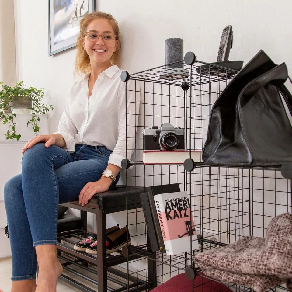 - Modern: Schwarzes Metallgitter verleiht dem praktischen Regalsystem robusten Industrial-Look