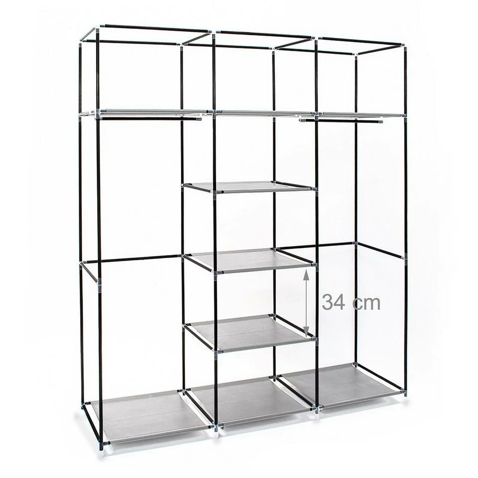 Stabiler Stoffkleiderschrank mit Kleiderstangen Egal, ob Sie Saisontextilien staubfrei lagern oder Ihre Campingausrüstung sicher verwahren wollen – der mobile Stoffschrank in XXL erfüllt alle Wünsche. Mit 9 Ablagen & 2 Kleiderstangen bietet der Faltschrank viel Stauraum für Kleidung, Schuhe & mehr. Der leichte Kleiderschrank aus Stoff ist schnell auf- & abgebaut & eignet sich wunderbar als Reiseschrank beim Camping. Nutzen Sie die Faltgarderobe als Kellerschrank, bleiben Ihre Sachen dank der Reißverschlüsse staubfrei & doch immer zugänglich.