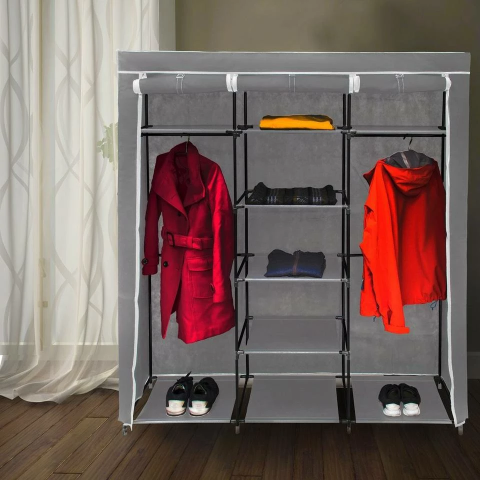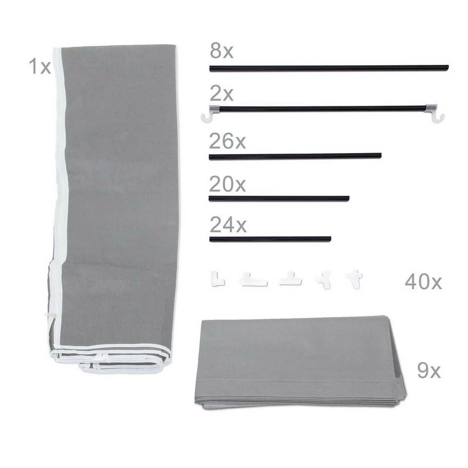 - Stauraum: 3 x Faltschrank Anthrazit mit Kleiderstangen und je 9 Ablagen – Für Kleidung, Decken uvm.