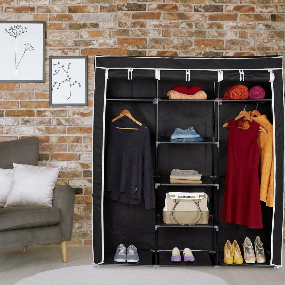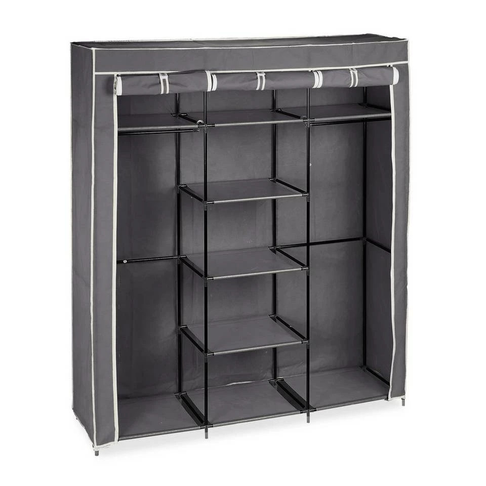 - Praktisch: Kleiderschrank mit 9 Böden – 2 Kleiderstangen – Aufrollbarer Überzug mit Reißverschluss