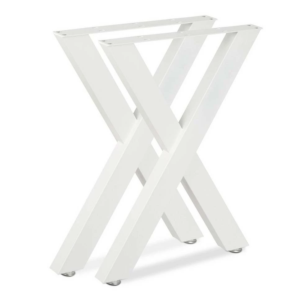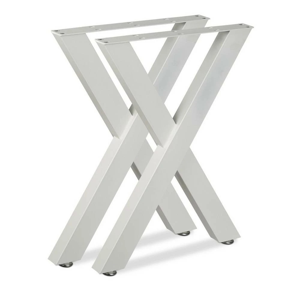 Moderne Tischfüße in X-Form Wenn sich einfach kein passender Tisch für Ihre Einrichtung findet oder Sie sich selbst gern handwerklich austoben wollen, dann ist dieses Tischuntergestell optimal für Sie geeignet. Die 2 Tischbeine punkten im angesagten X-Design. Mit der Wahl aus verschiedenen Farben bieten die Tischkufen die Möglichkeit, einen Esstisch, Wohnzimmertisch sowie Schreibtisch in eleganter Optik oder modernem Industrie Design zu kreieren. Somit fehlt lediglich die Tischplatte Ihrer Wahl für Ihr eigenes DIY Projekt.