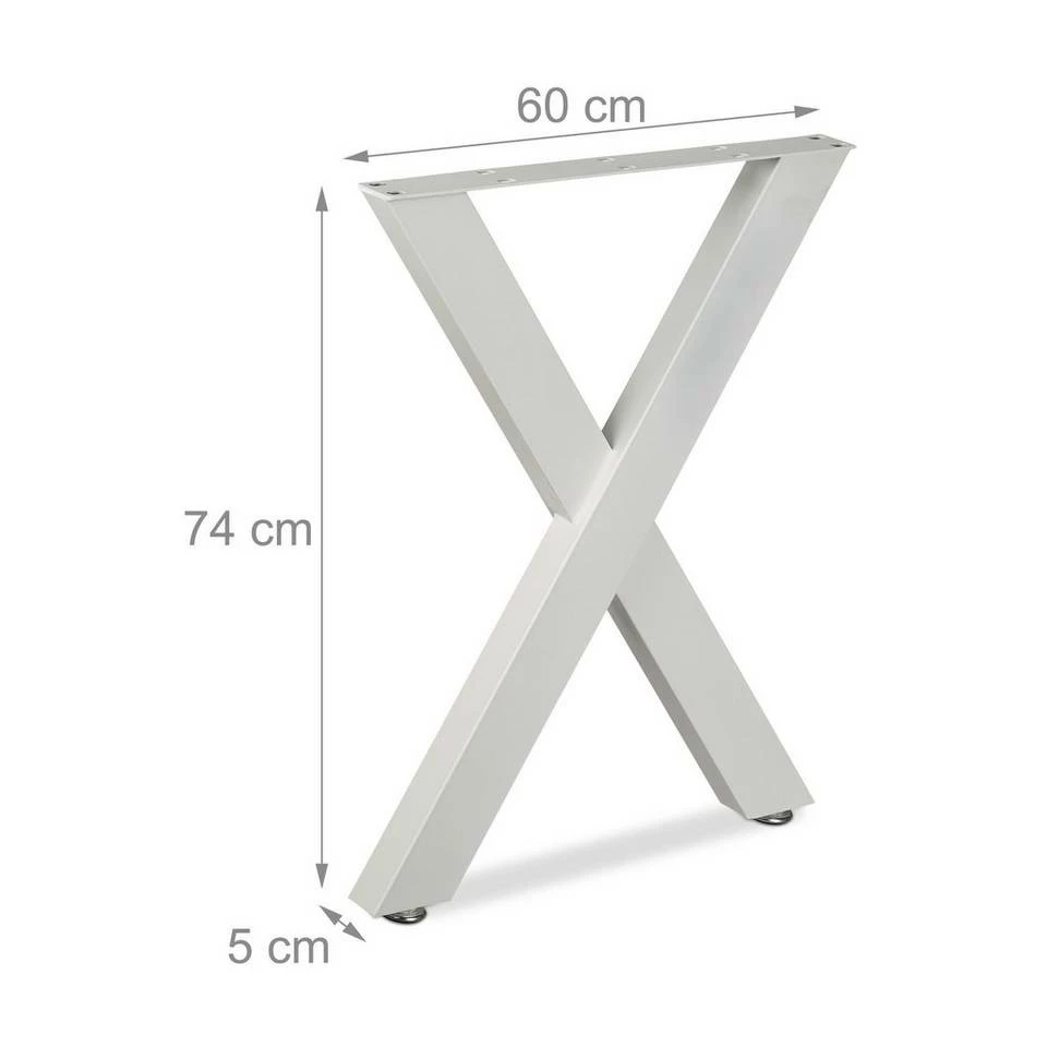 - Design: Tischfüße in ansprechender X-Form – HxBxT: ca. 74 x 60 x 5 cm – Je bis ca. 100 kg belastbar