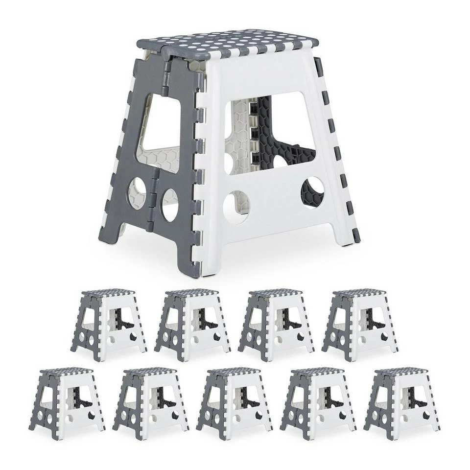 - Einstufig: 10x Klapphocker extra hoch als universelle Aufstiegshilfe im Haushalt – Grau-weißes Design